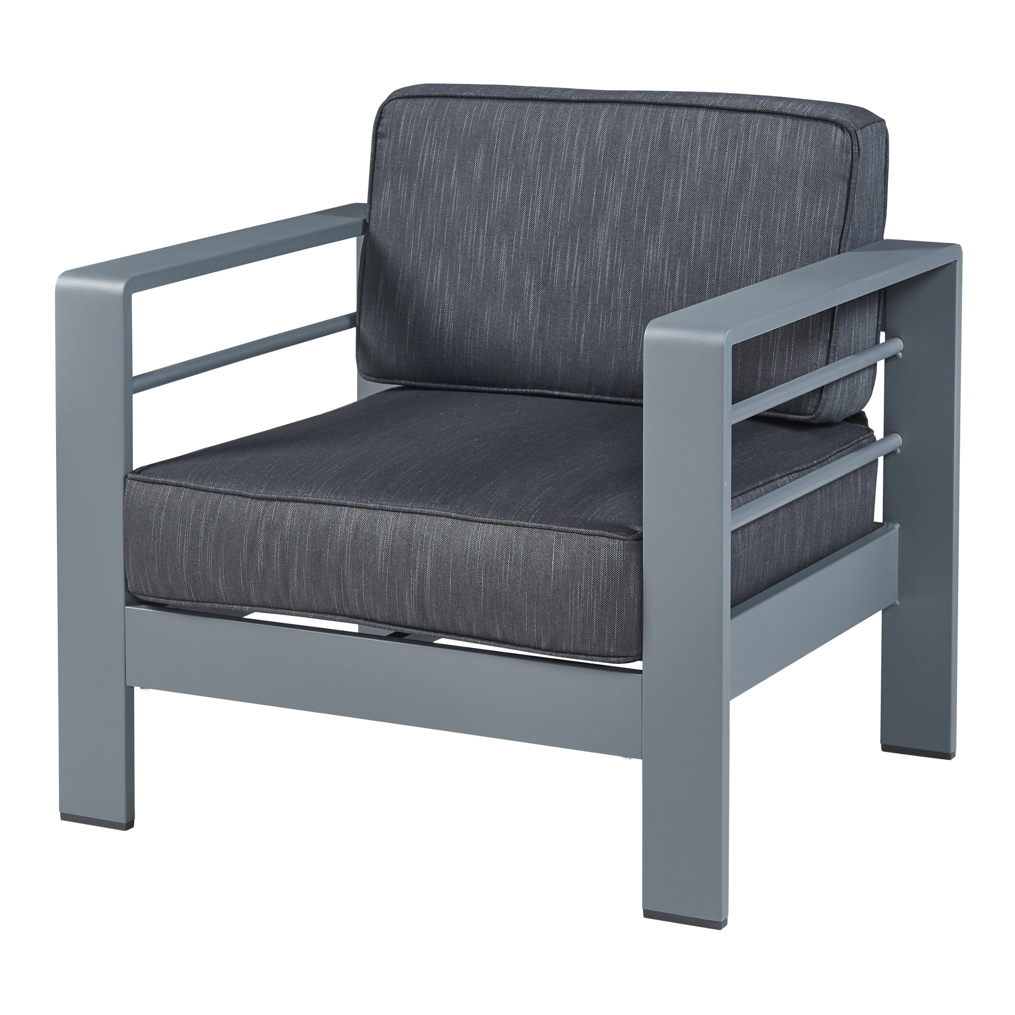 Fotoliu de grădină Avise din aluminiu, gri închis, cu perne
