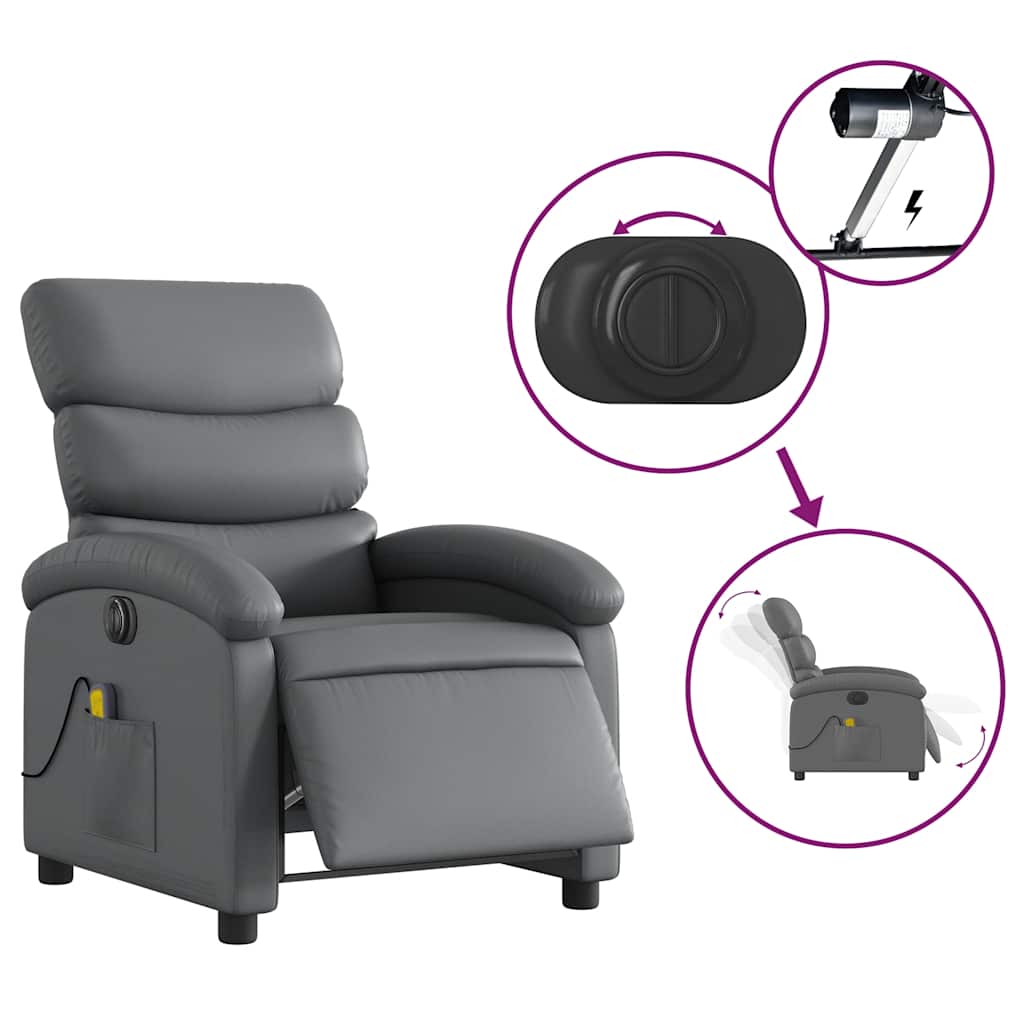Fotoliu de masaj electric rabatabil, gri, piele ecologică GartenMobel Dekor