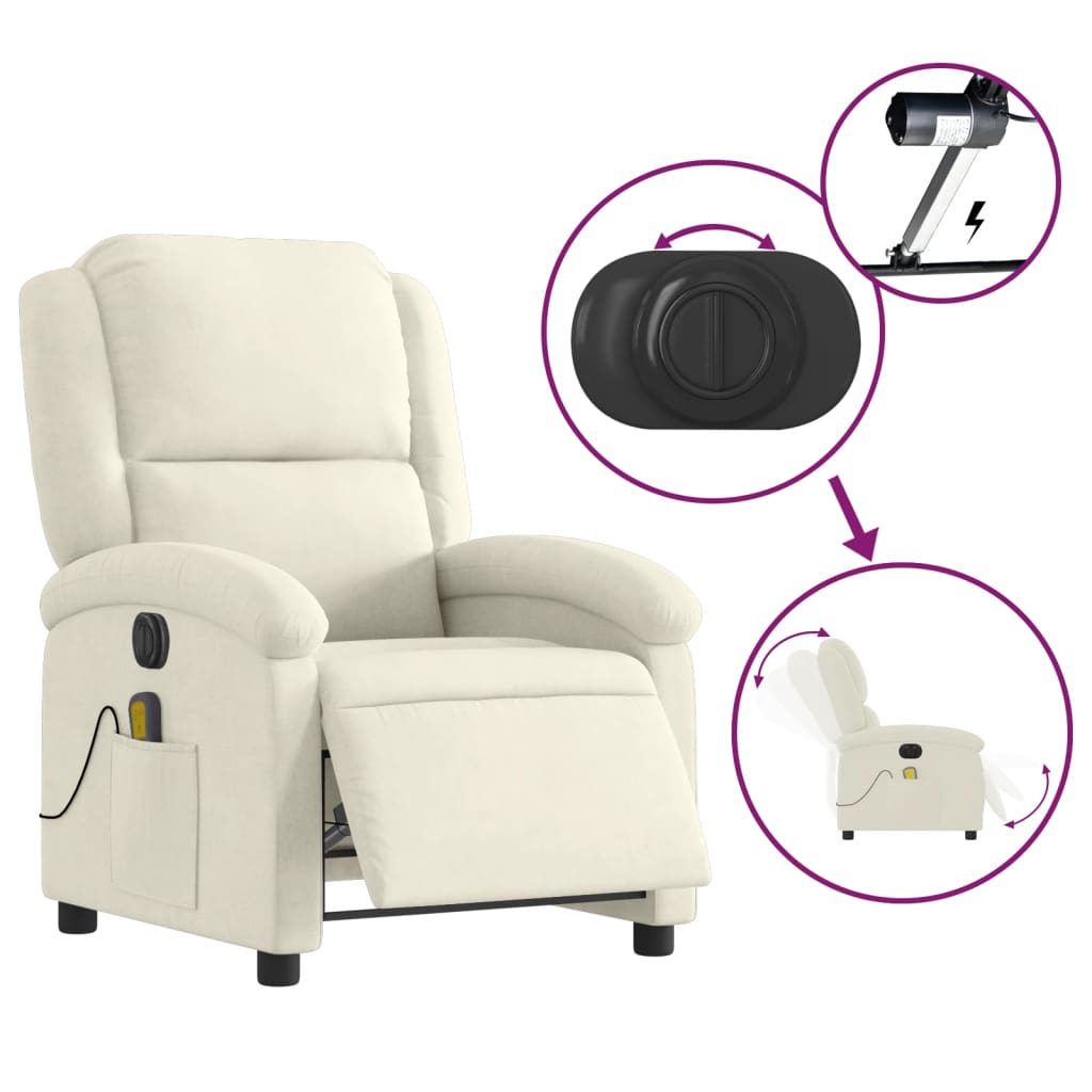 Specificatii Fotoliu masaj rabatabil ridicare, crem, catifea