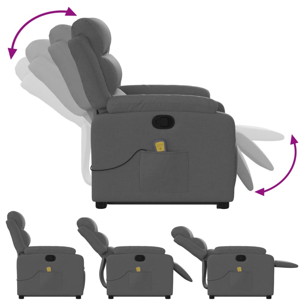 Descriere Fotoliu masaj rabatabil ridicare, gri închis,