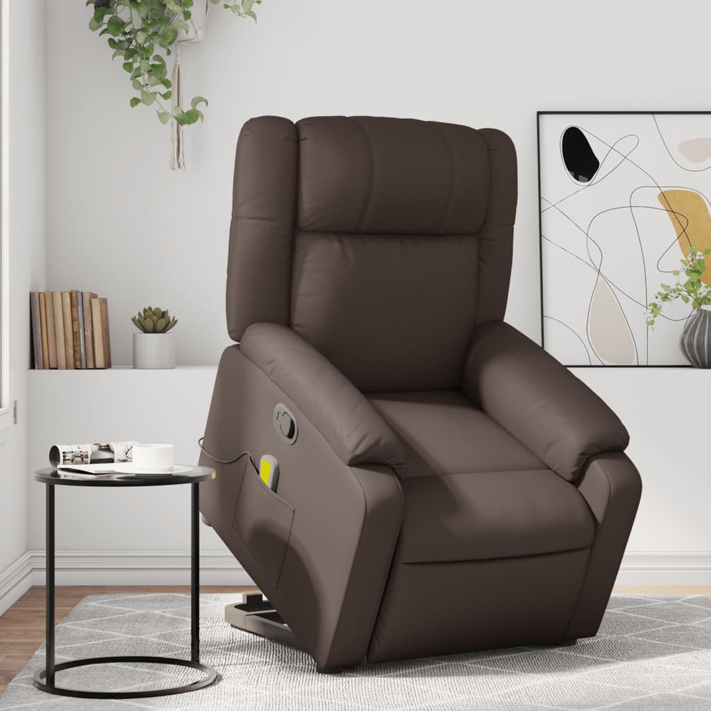 Fotoliu de masaj rabatabil cu ridicare, maro, piele ecologică GartenMobel Dekor
