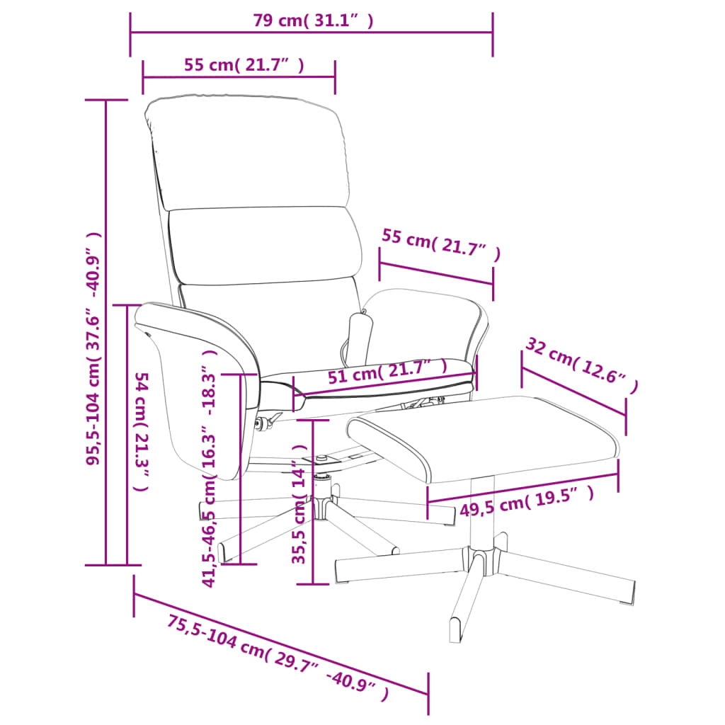 - Dimensiuni în poziția întins: 79 x 104 x 95,5 cm (l x ad. x î)