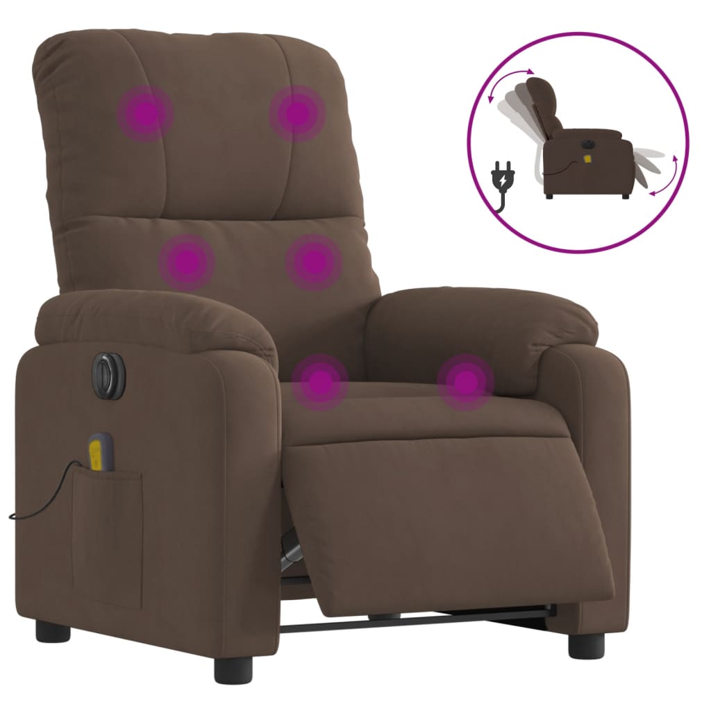 Fotoliu de masaj rabatabil electric, maro, microfibră GartenMobel Dekor
