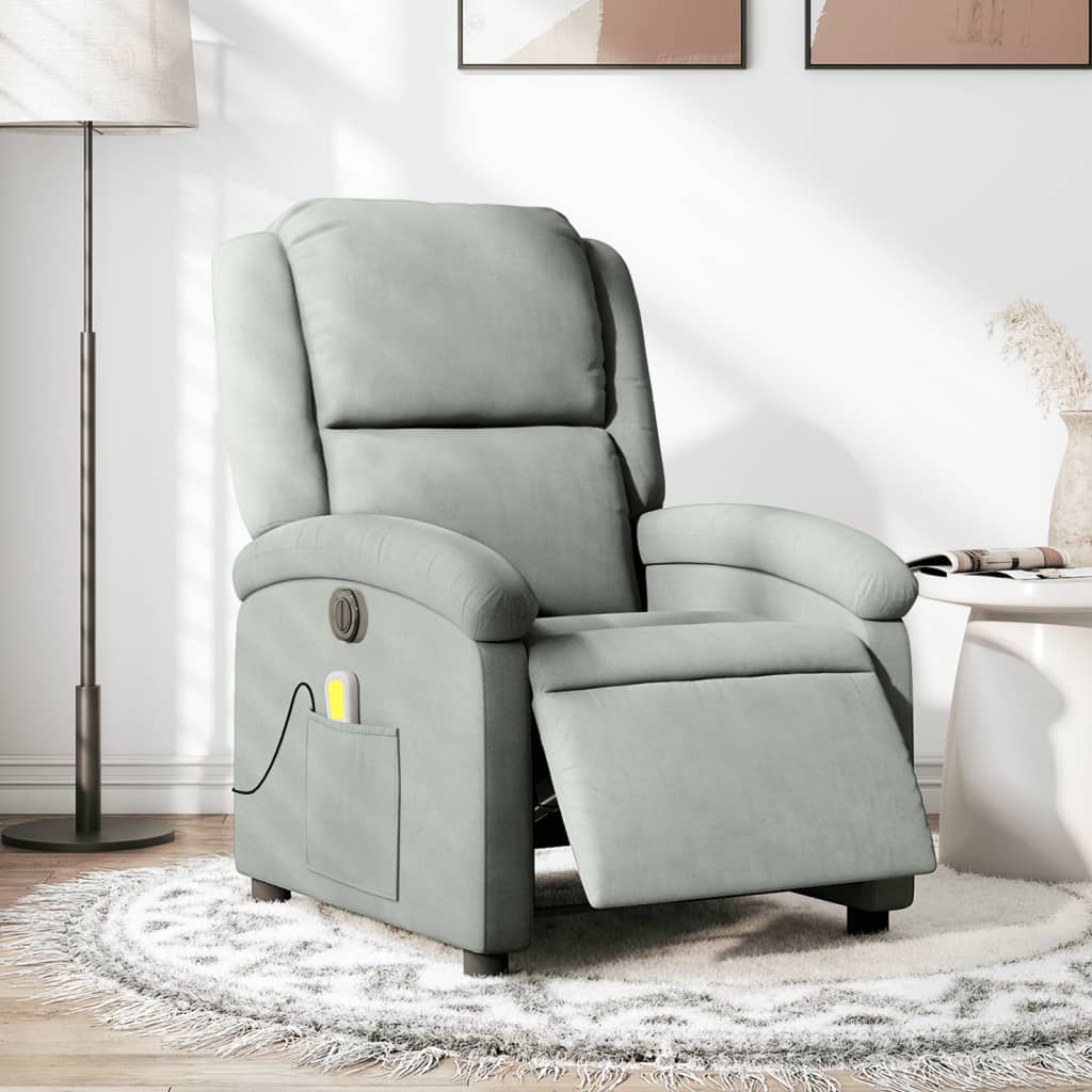 Fotoliu electric de masaj rabatabil, gri deschis, catifea GartenMobel Dekor