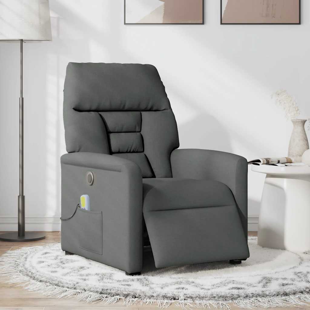 Descriere Fotoliu electric masaj rabatabil, gri închis,