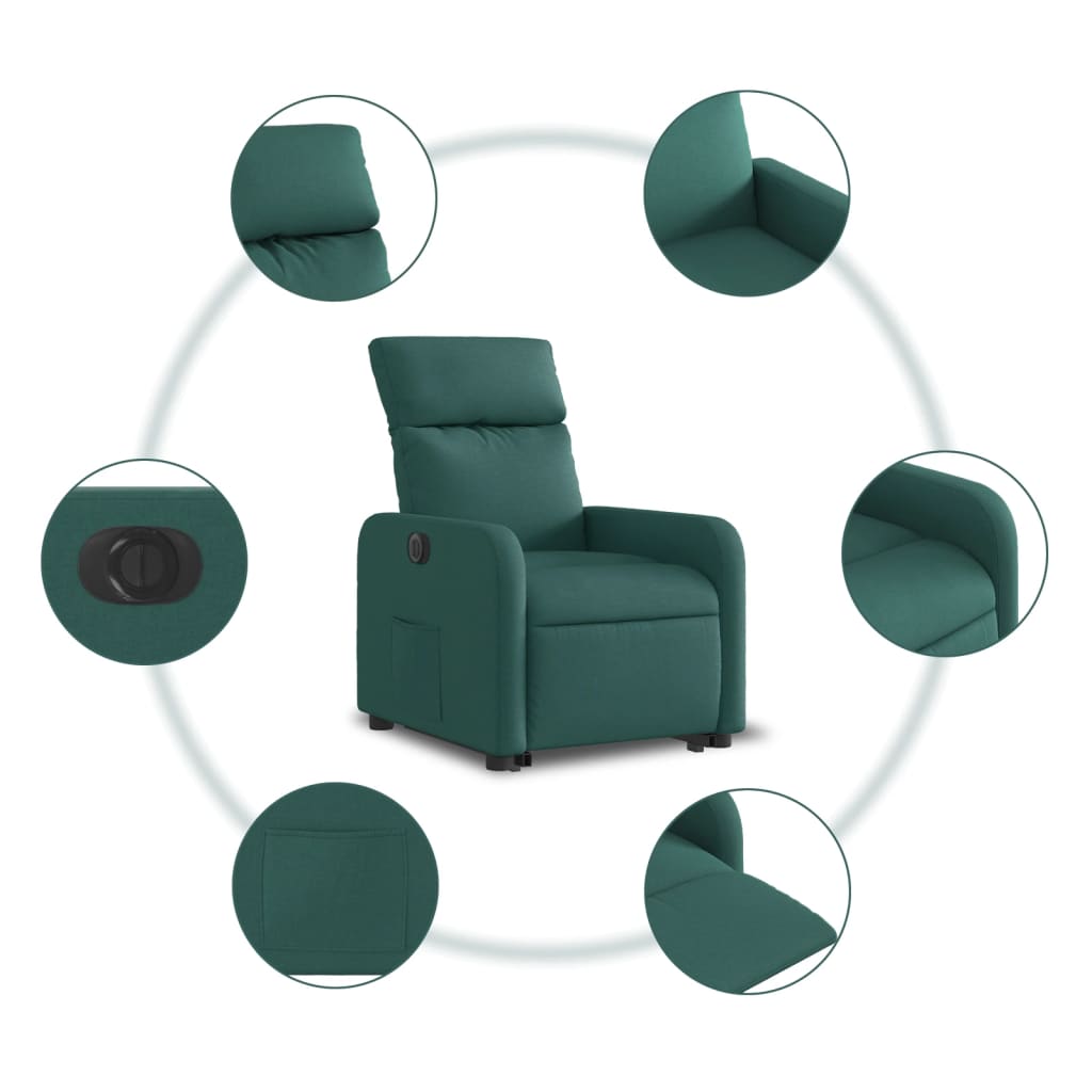 Fotoliu electric rabatabil cu ridicare, verde închis, textil GartenMobel Dekor