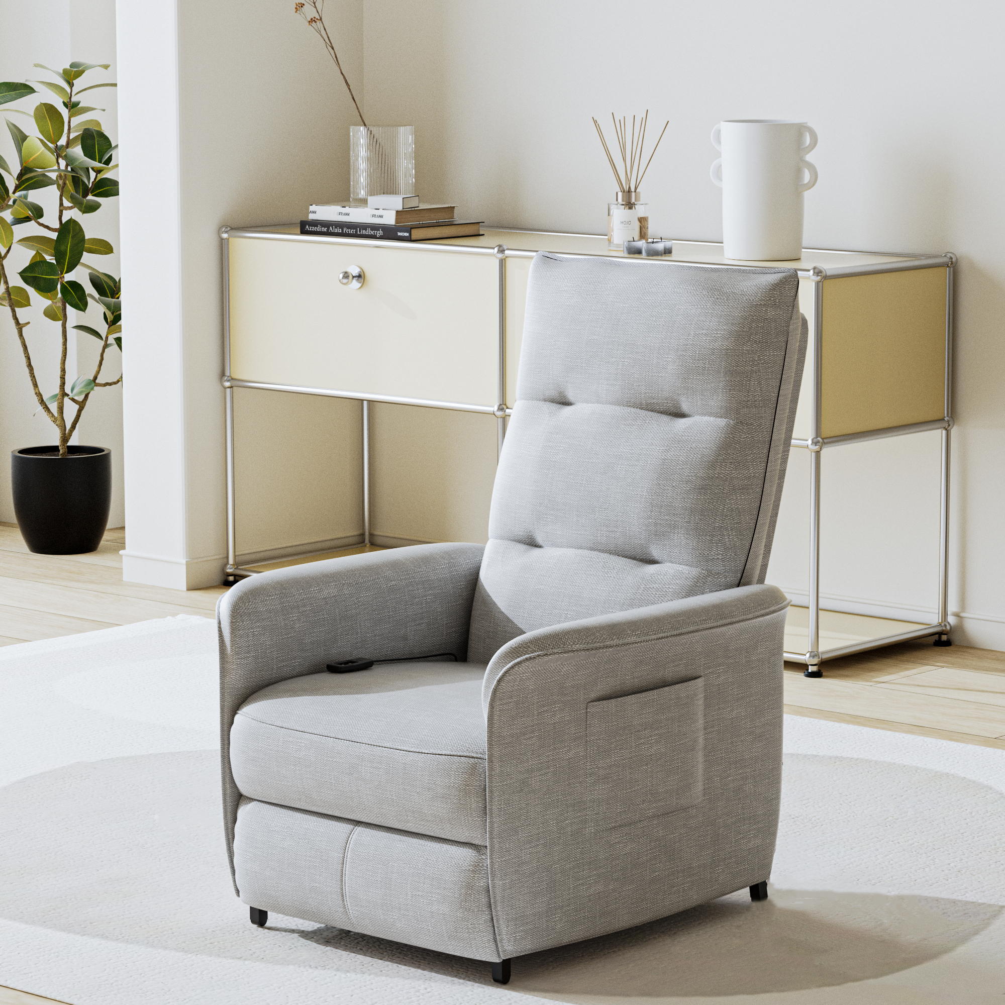 Fotoliul electric recliner Savukoski este alegerea potrivita pentru momentele in care vrei sa te relaxezi cu adevarat in living, dormitor sau coltul tau de lectura. Cu un design elegant, modern si o nuanta placuta de gri deschis, acest fotoliu electric se integreaza usor in amenajari diverse si aduce un plus de confort in orice incapere.