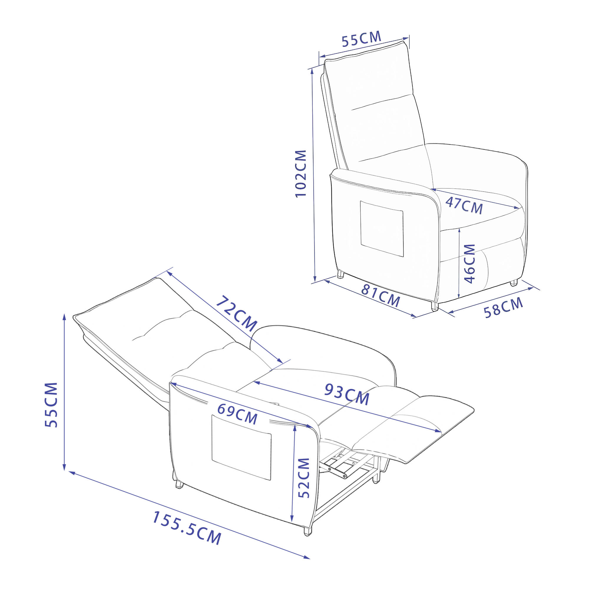 - Dimensiune sezut: 55 x 47 cm (l x A)