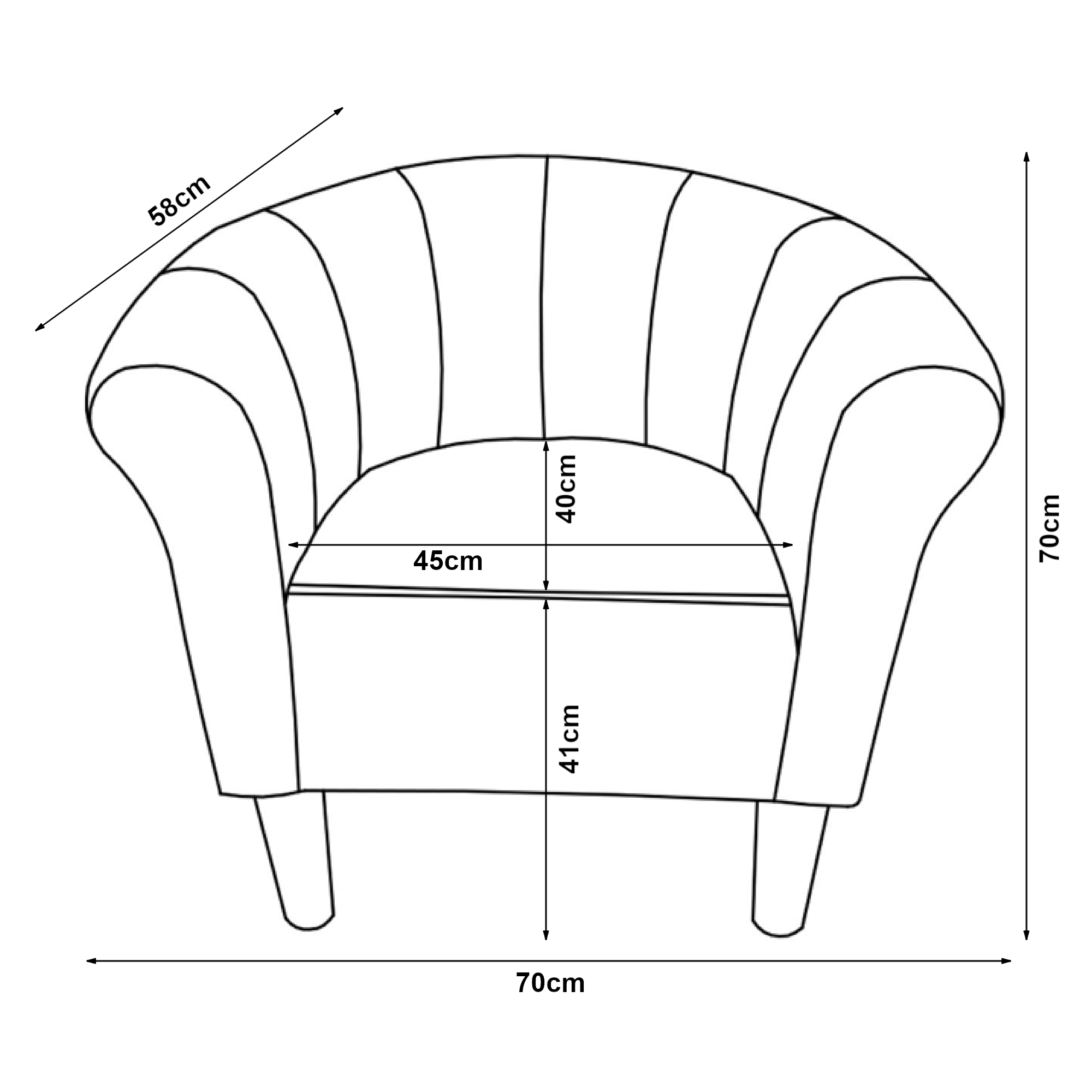 - Dimensiuni totale (ÎxLxA): 70 x 70 x 58 cm