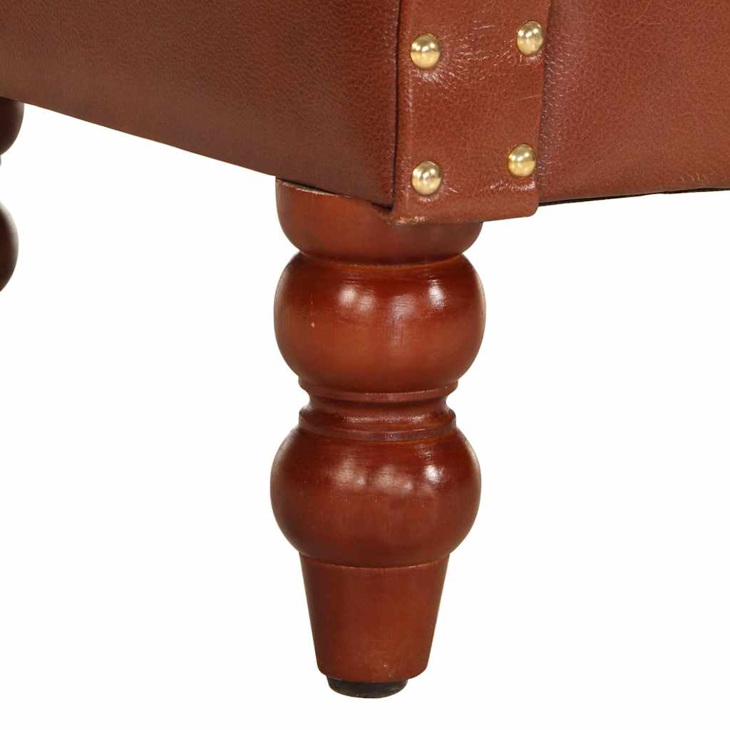 Acest scaun este tapițat cu piele rezistentă de capră, oferind o experiență excelentă la ședere. Canapeaua este susținută de picioare din lemn de mango rezistent, fiind stabilă și robustă.