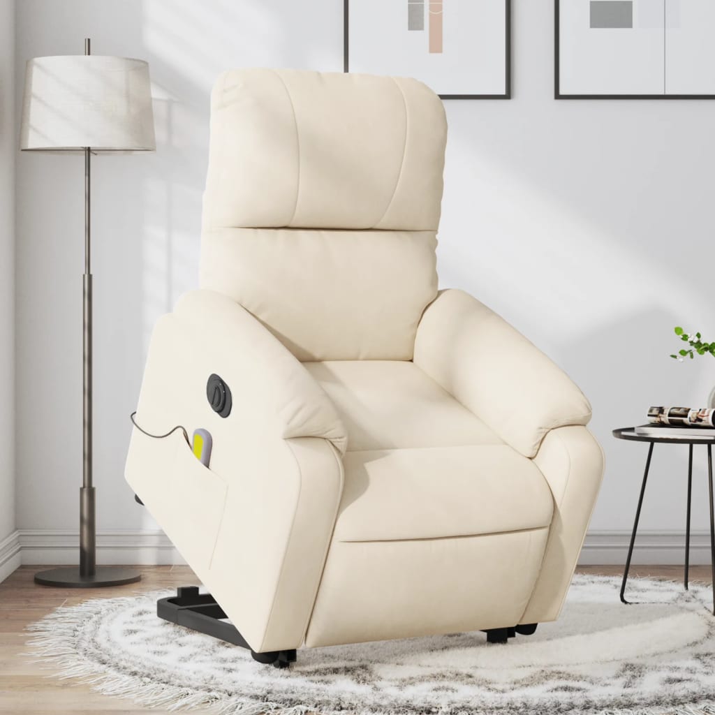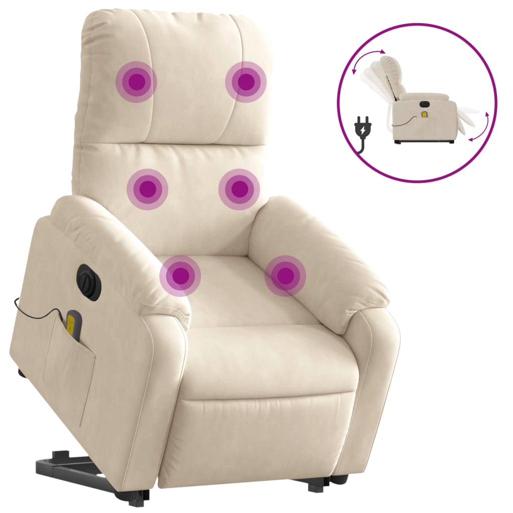 Fotoliu masaj rabatabil electric cu ridicare, bej, microfibră GartenMobel Dekor