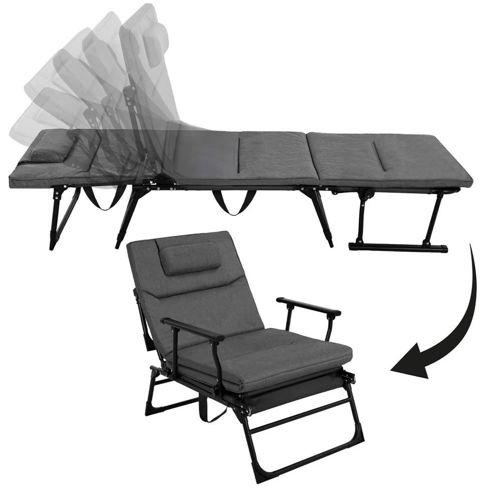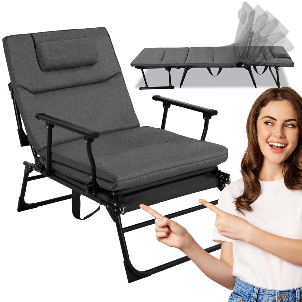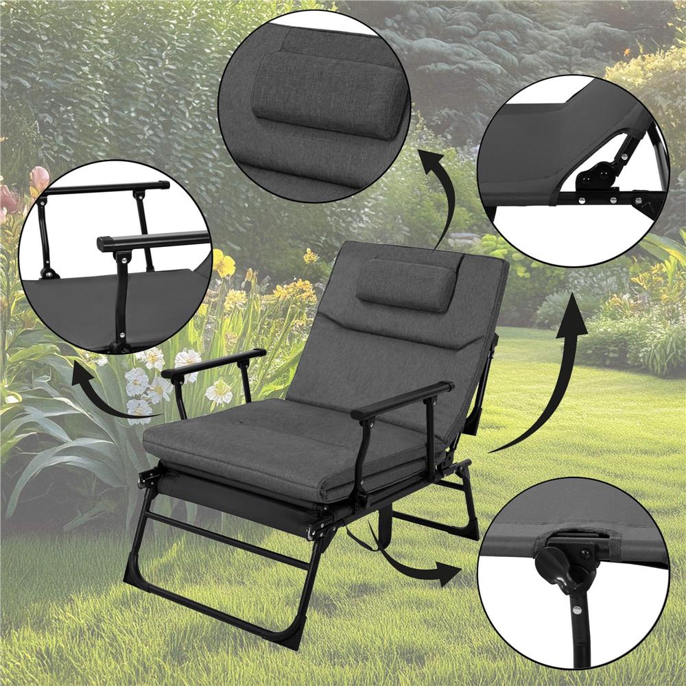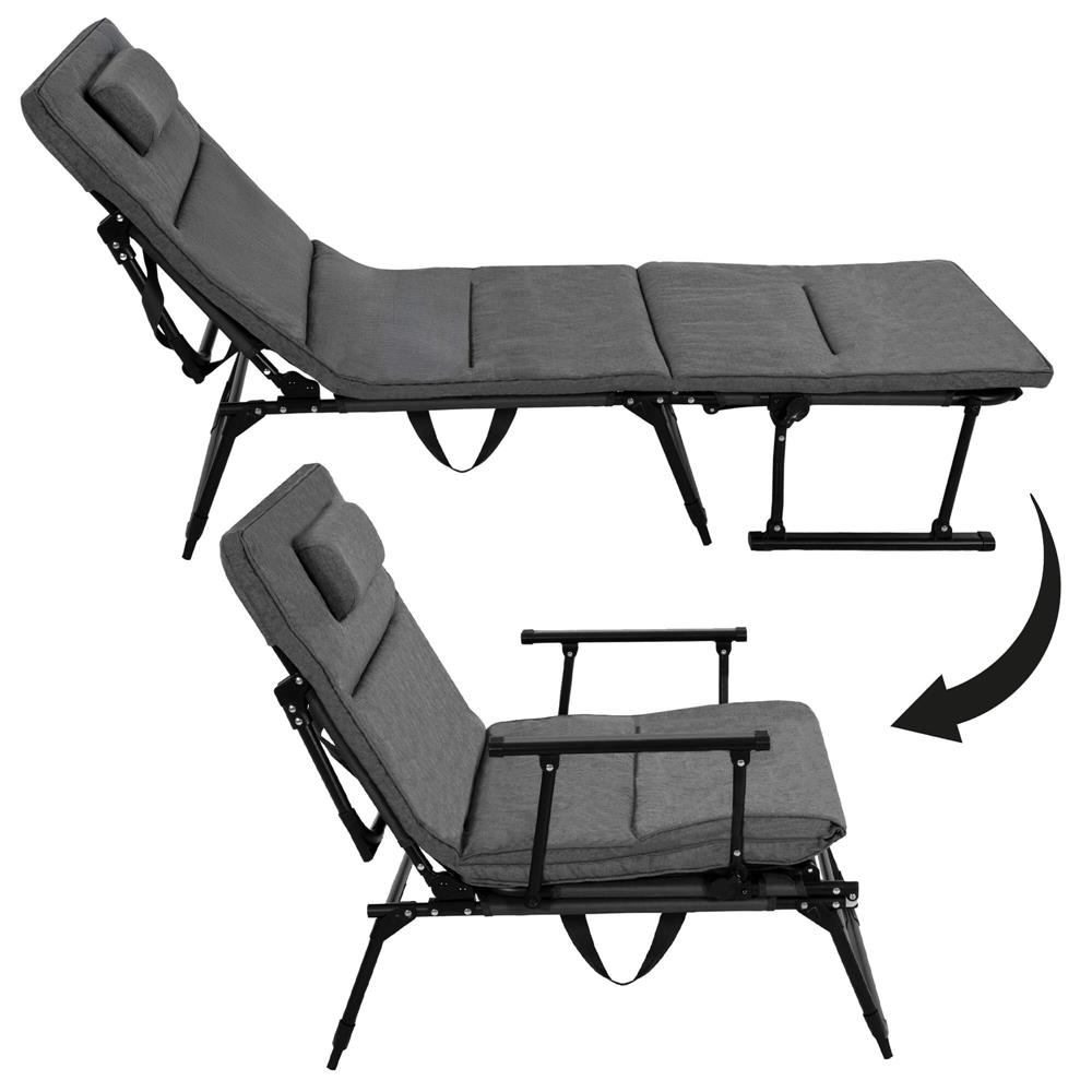 Fotoliu pliabil 2 in 1 tip sezlong, cu 5 pozitii si saltea, gri