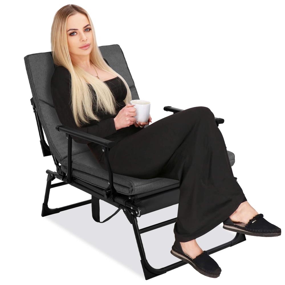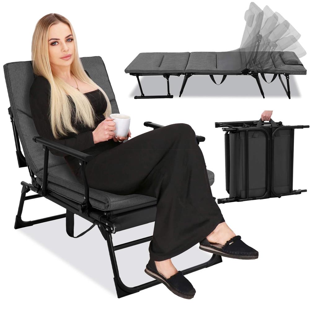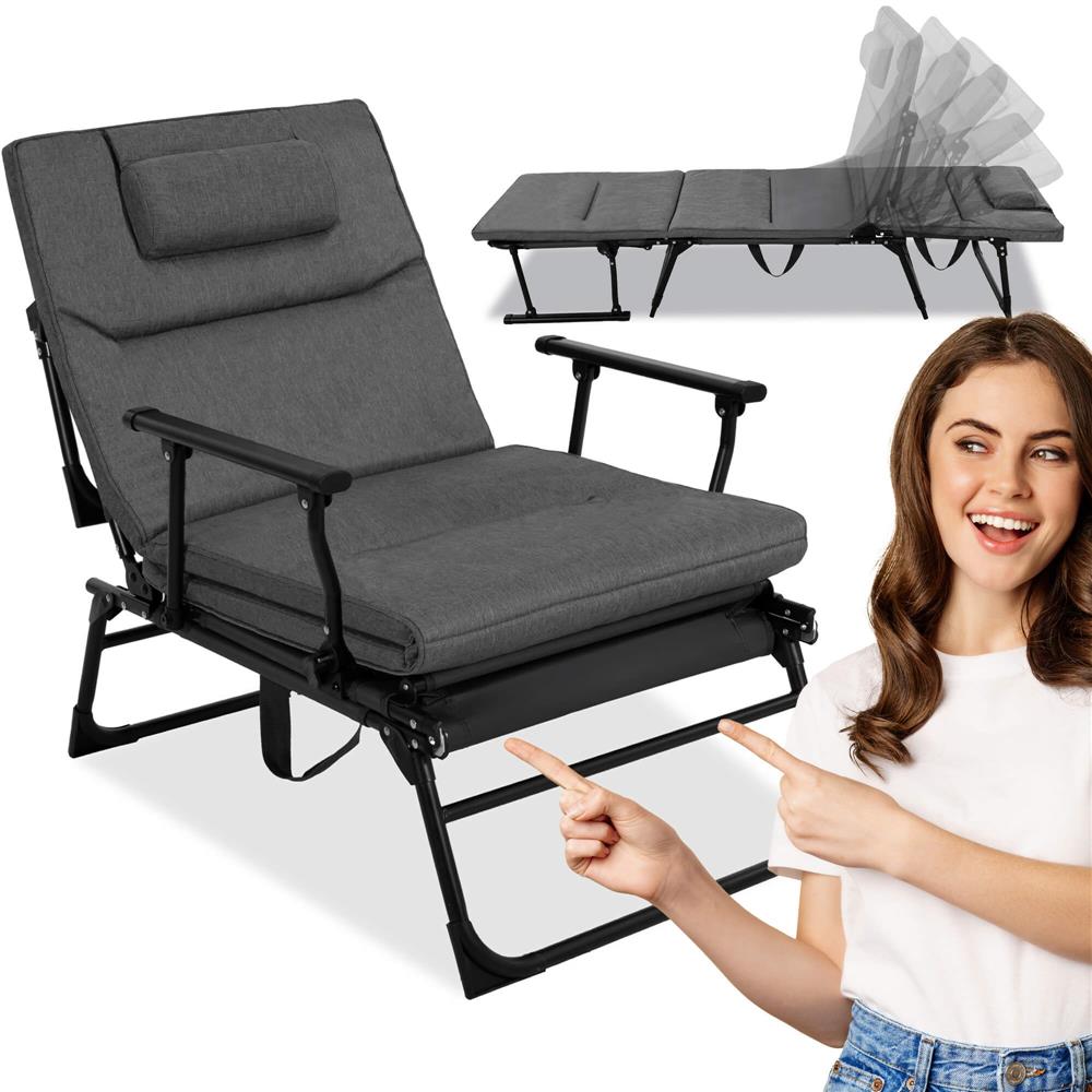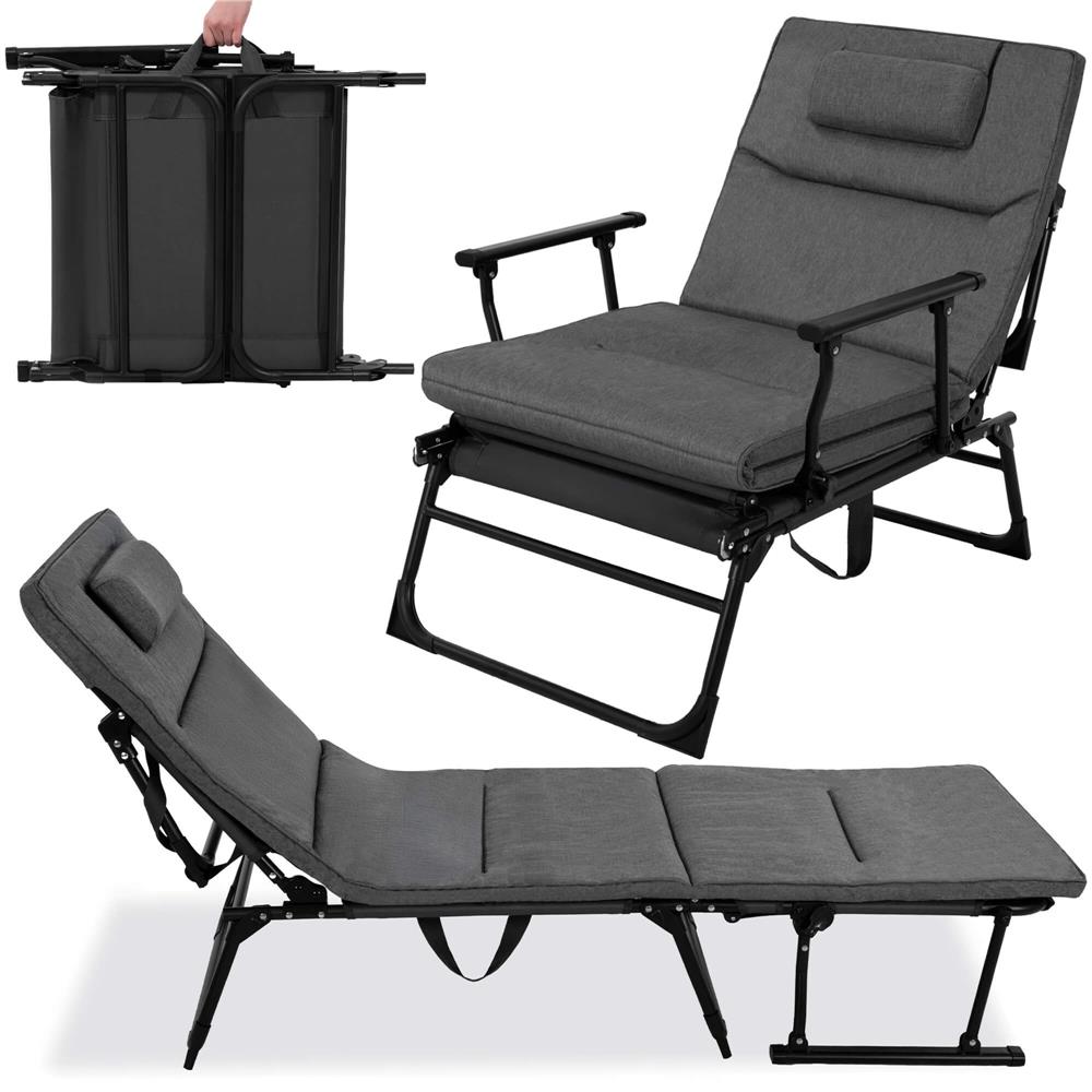 Fotoliu pliabil 2 in 1 tip sezlong, cu 5 pozitii si saltea, gri