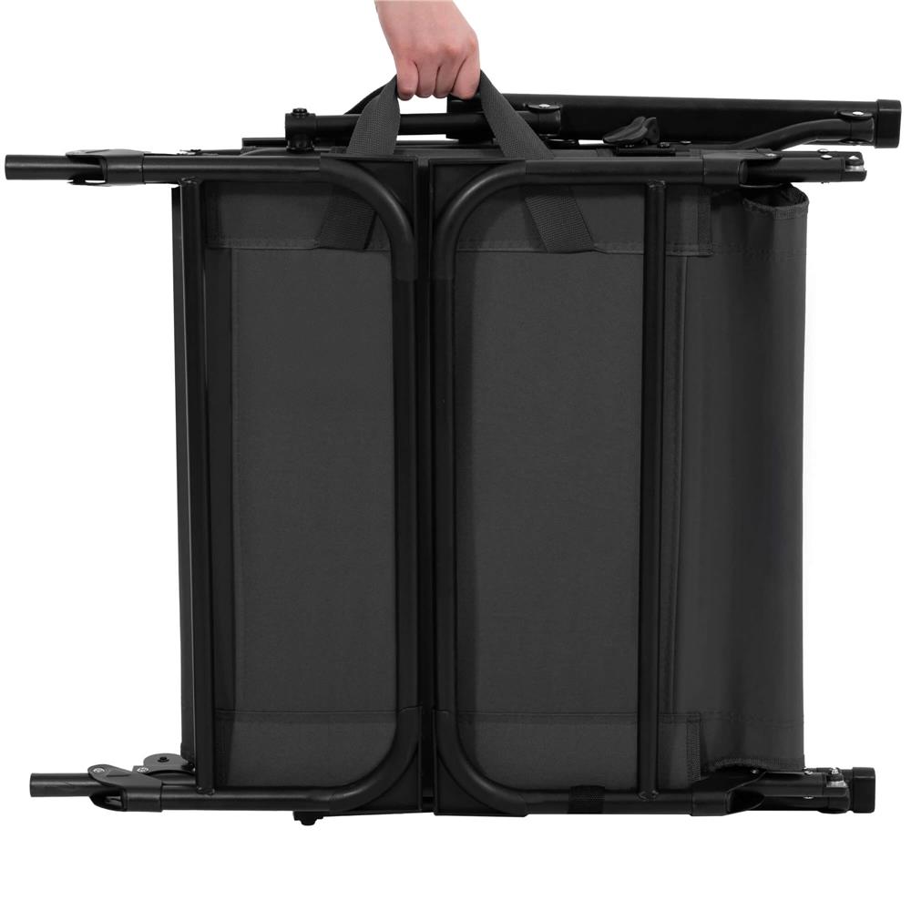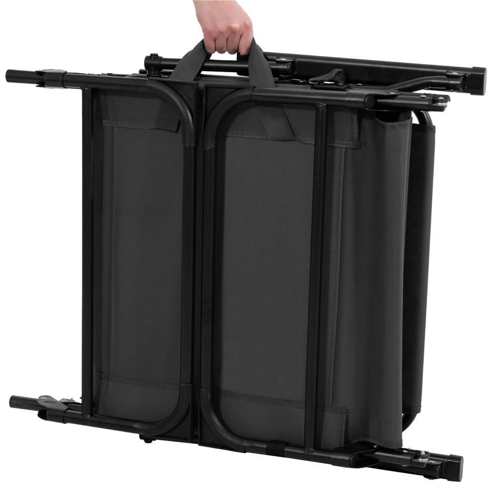 Spatarul reglabil in 5 trepte iti permite sa alegi rapid pozitia potrivita pentru citit, odihna sau plaja. Cadrul din otel vopsit asigura stabilitate, iar materialul textil din poliester este placut la atingere si usor de intretinut. In plus, modelul se pliaza compact si este usor de transportat cu ajutorul manerului si al curelei incluse.