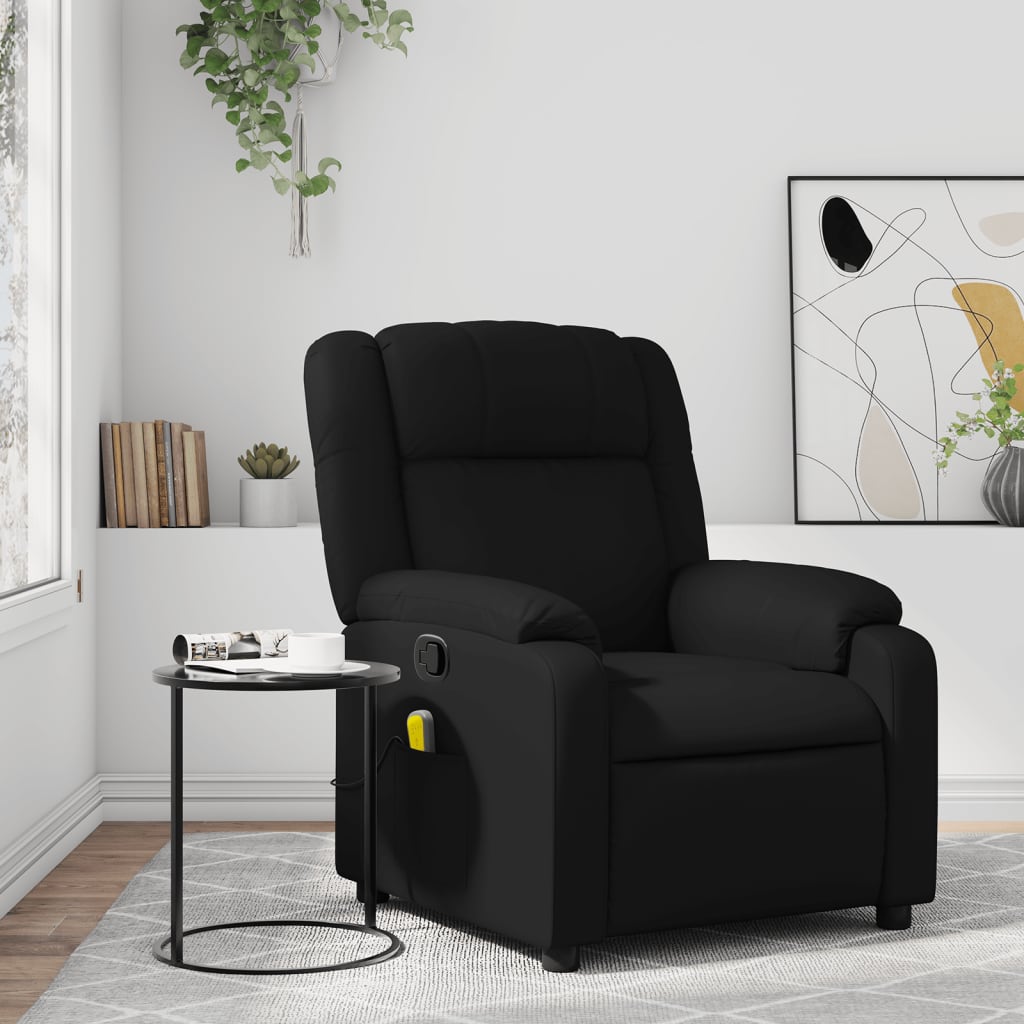 Descriere Fotoliu rabatabil masaj, negru, piele ecologică