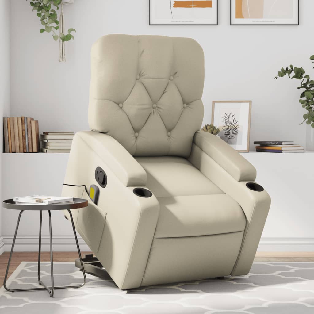 Specificatii Fotoliu rabatabil ridicare, crem, piele ecologică