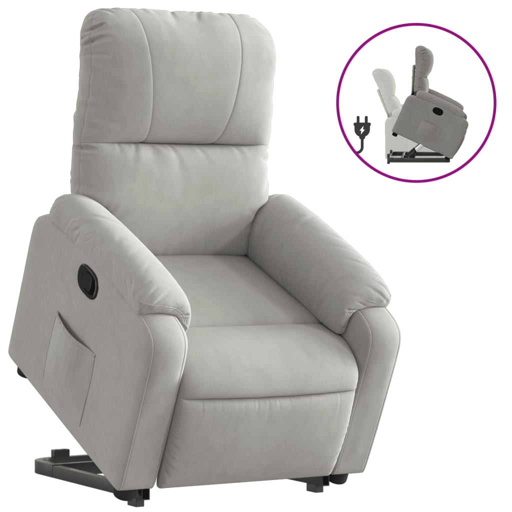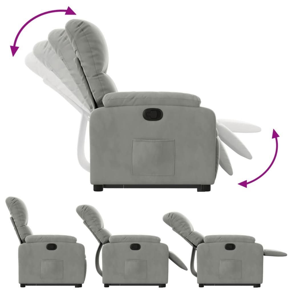 Descriere Fotoliu rabatabil ridicare, gri deschis, microfibră
