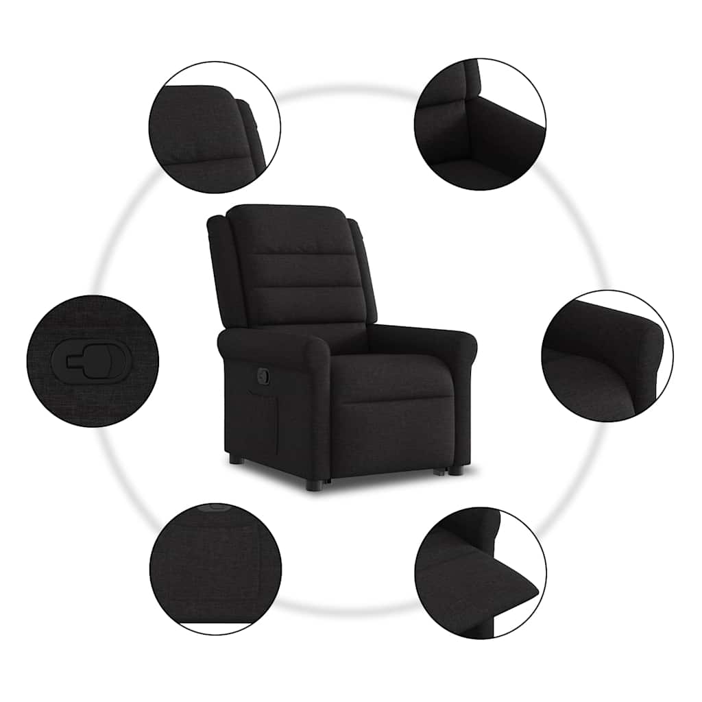 Descriere Fotoliu rabatabil ridicare verticală, negru, textil