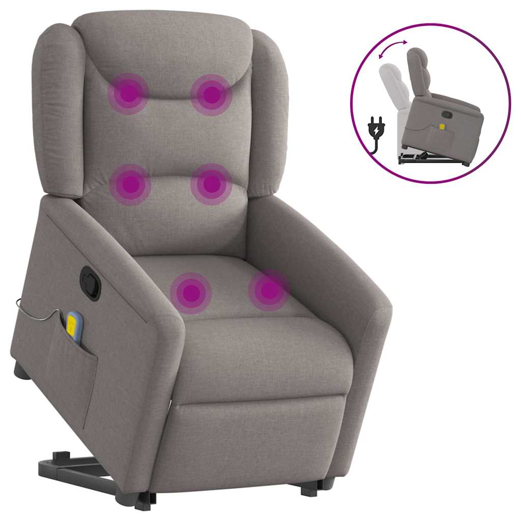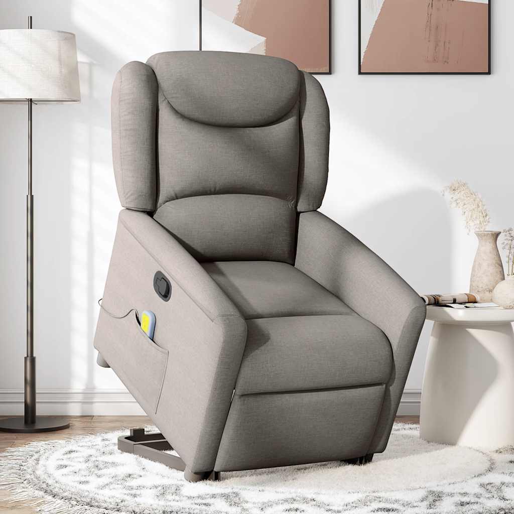 Fotoliu rabatabil de masaj cu ridicare, gri taupe, textil GartenMobel Dekor