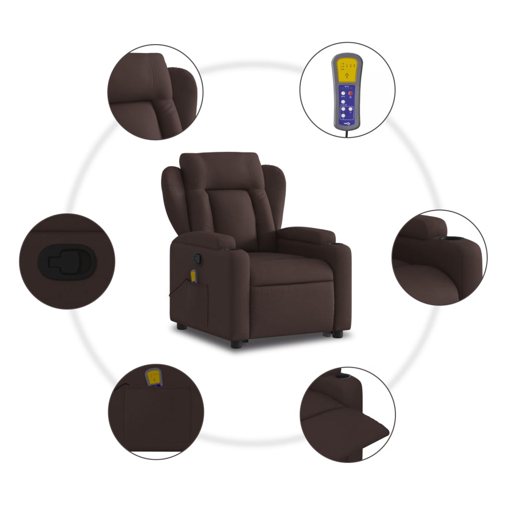 Descriere Fotoliu rabatabil masaj, ridicare, maro închis,