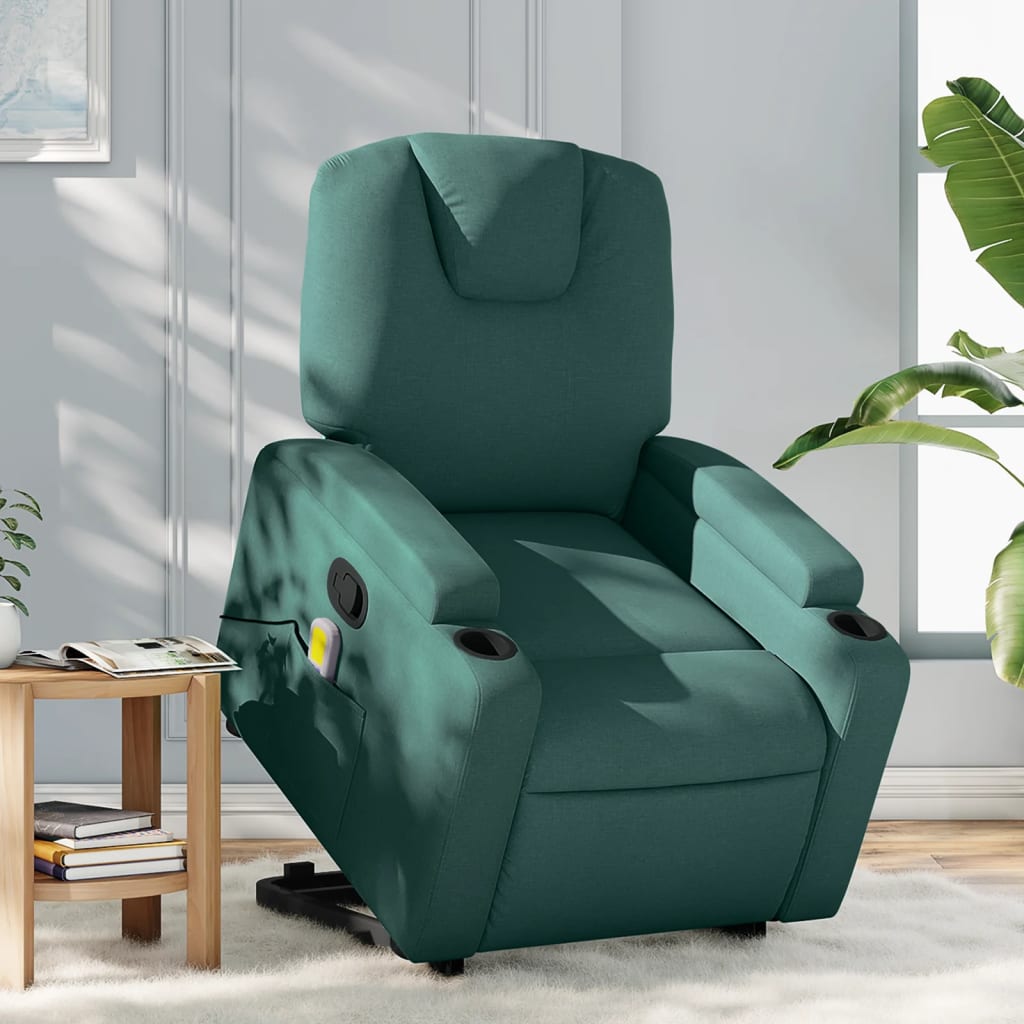 Descriere Fotoliu rabatabil masaj, ridicare, verde închis,