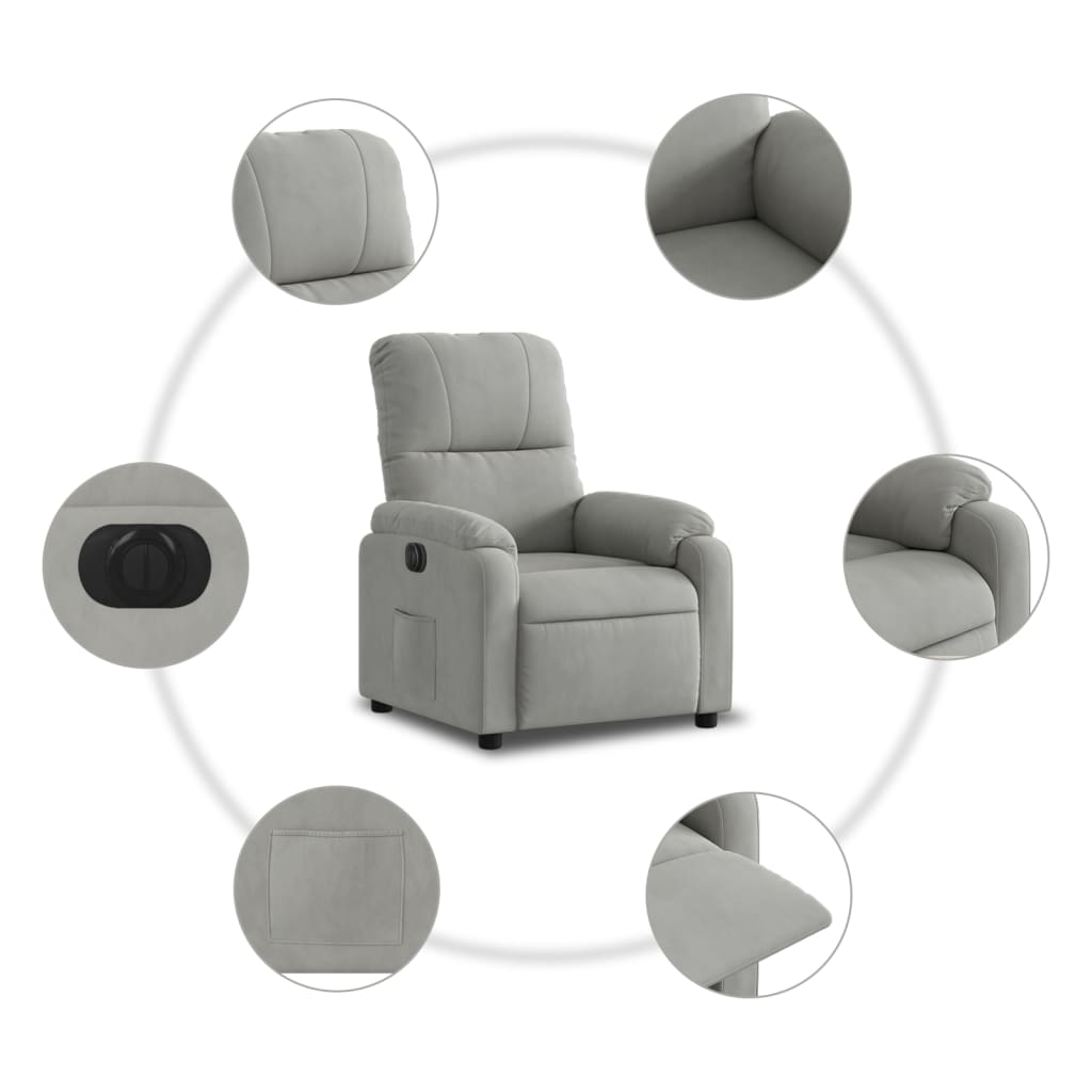 Descriere Fotoliu rabatabil electric, gri deschis, microfibră
