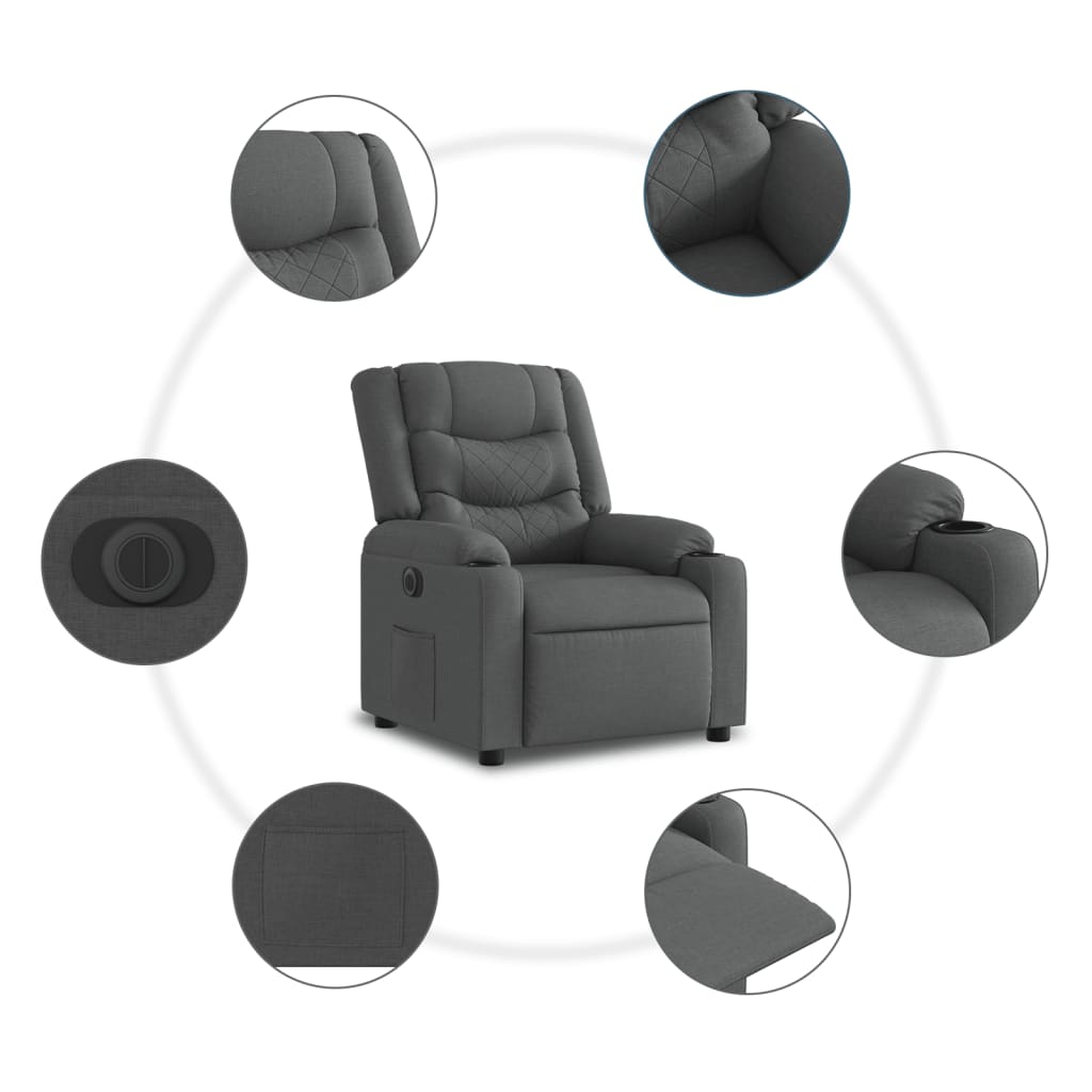 Descriere Fotoliu rabatabil electric, gri închis, material