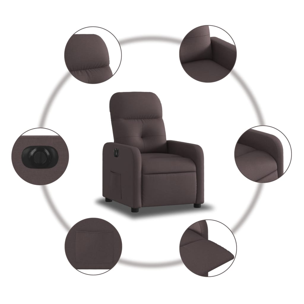 Descriere Fotoliu rabatabil electric, maro închis, material