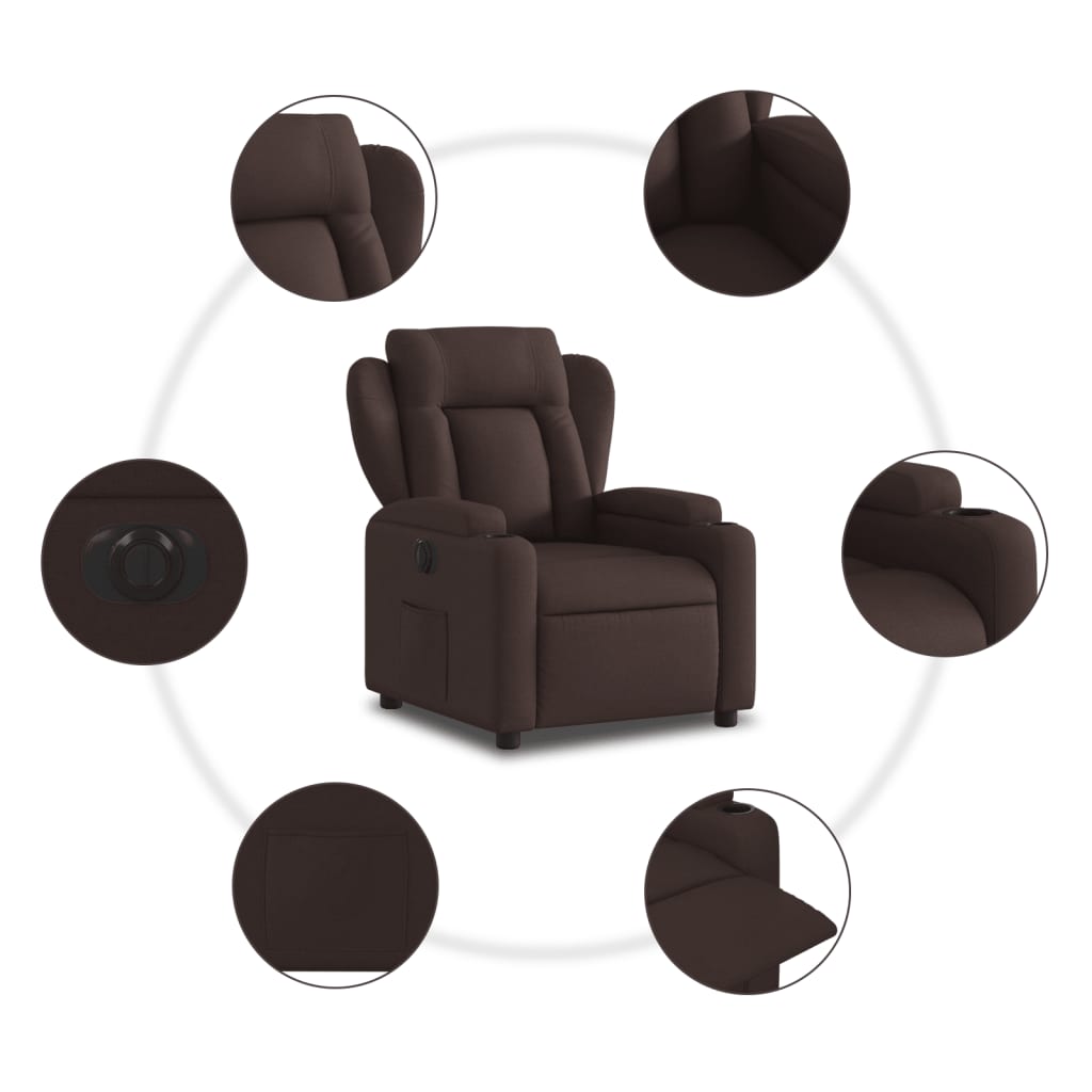 Descriere Fotoliu rabatabil electric, maro închis, material