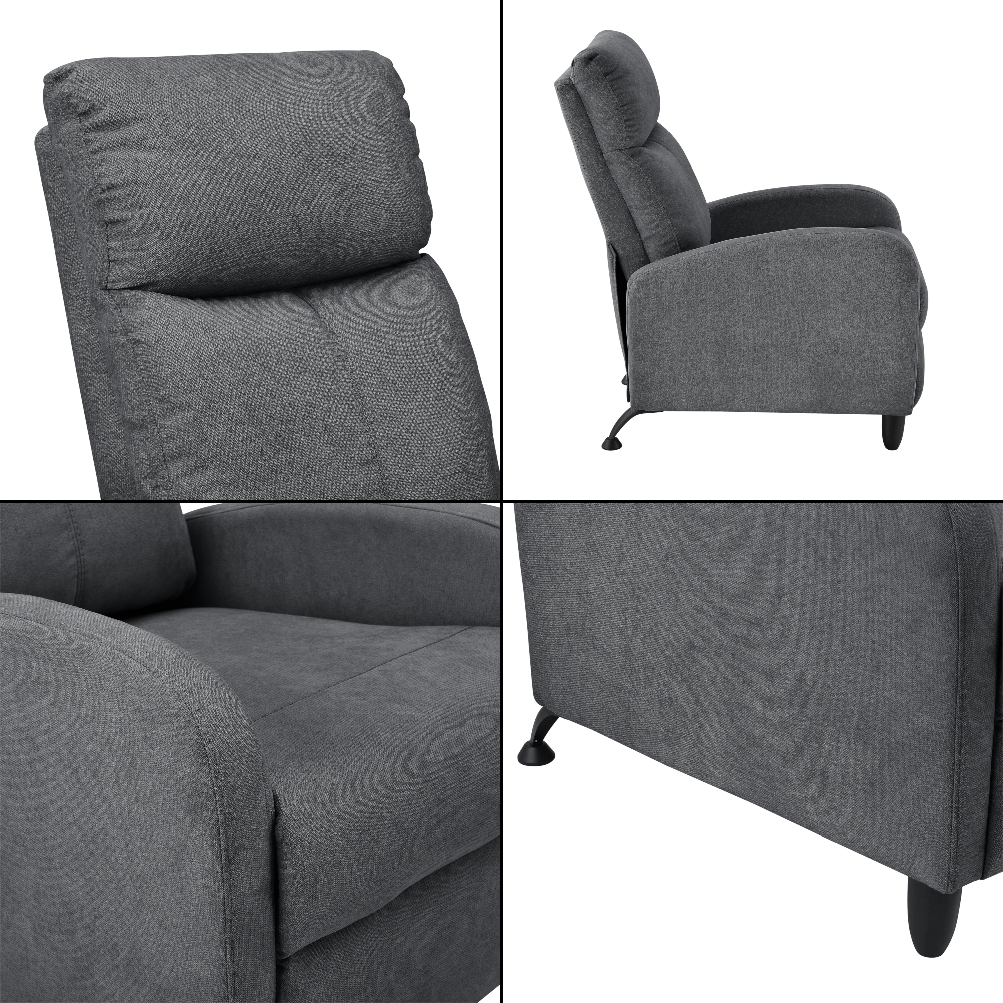 Fotoliu recliner Bregenz este alegerea potrivită dacă îți dorești un loc confortabil pentru pauze, citit sau momente de relaxare acasă. Cu un design modern și o nuanță elegantă de gri închis, acest fotoliu recliner se integrează ușor în living, birou sau colțul tău preferat de odihnă. Spătarul reglabil îți oferă mai mult confort, iar construcția stabilă îl face potrivit pentru utilizare zilnică.