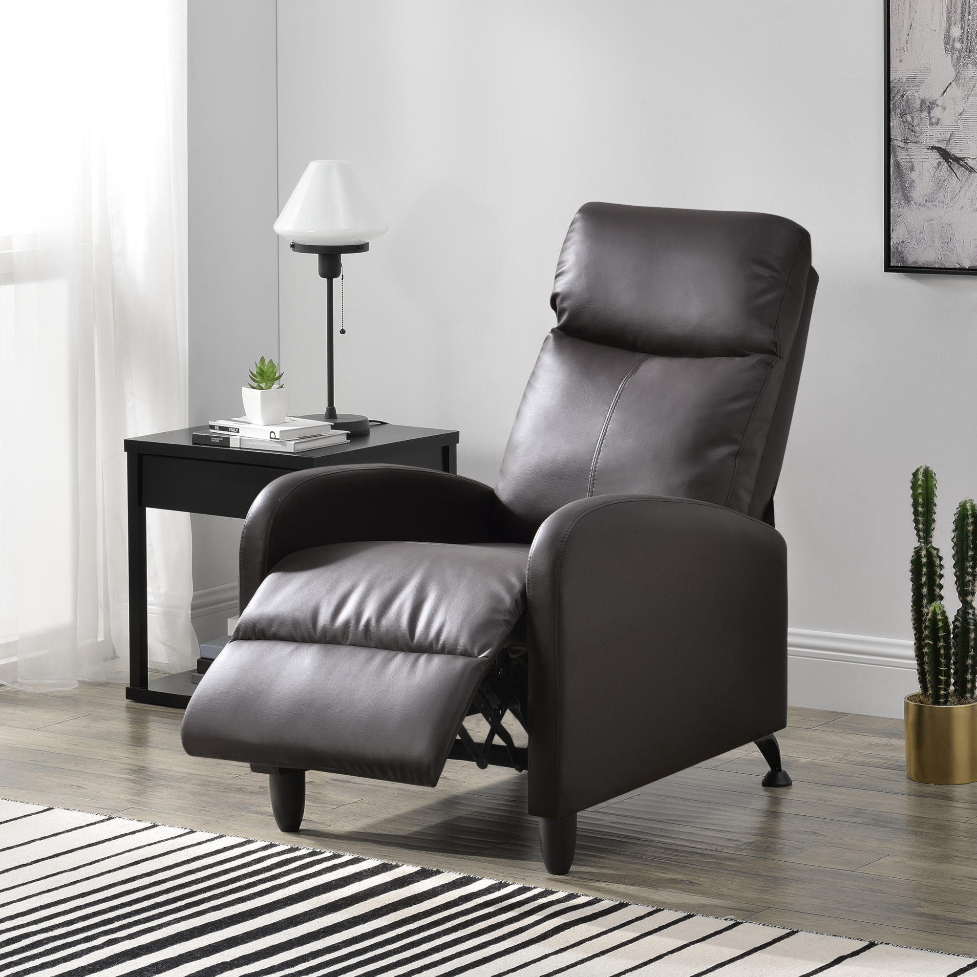 Fotoliu recliner Bregenz maro, cu spătar reglabil, piele ecologică