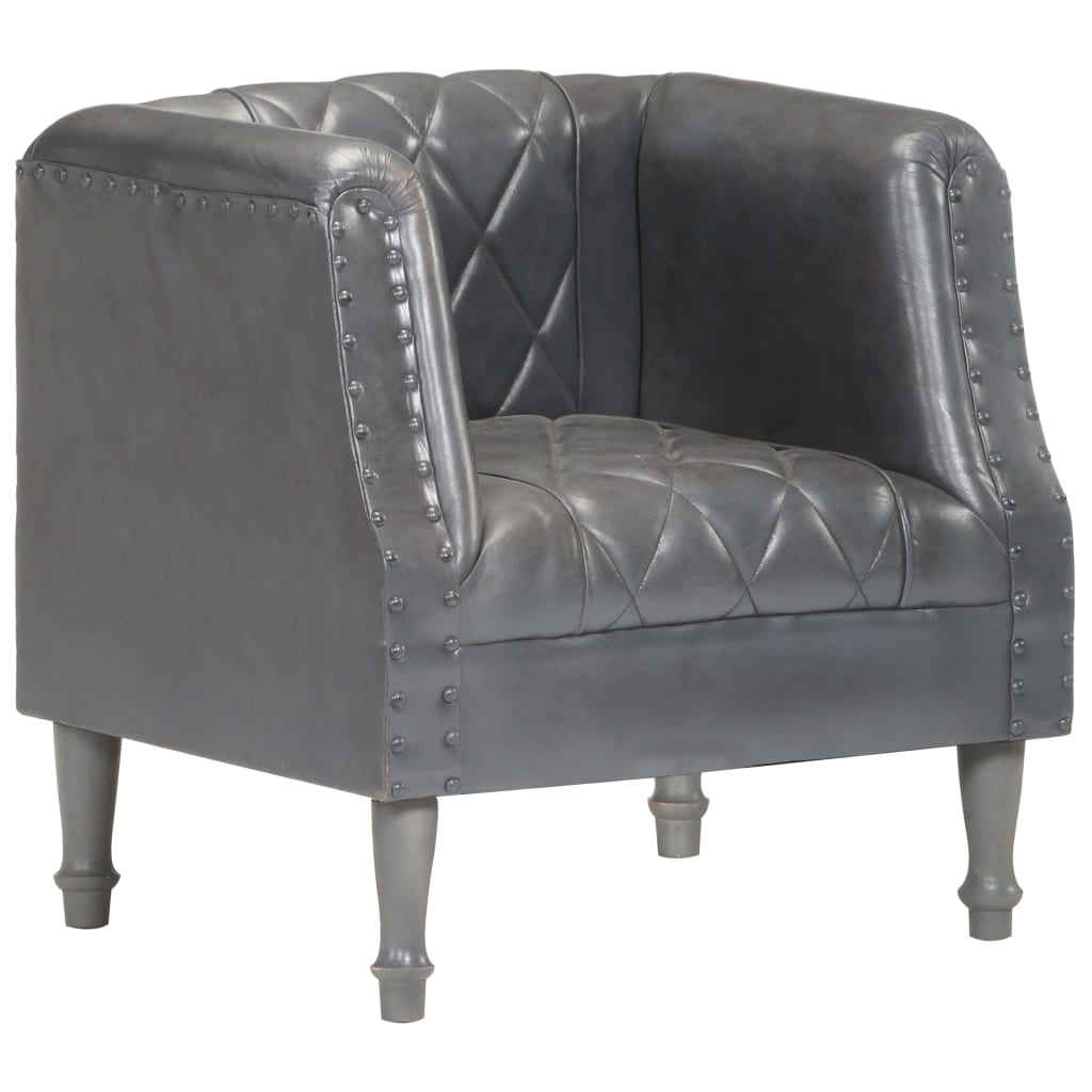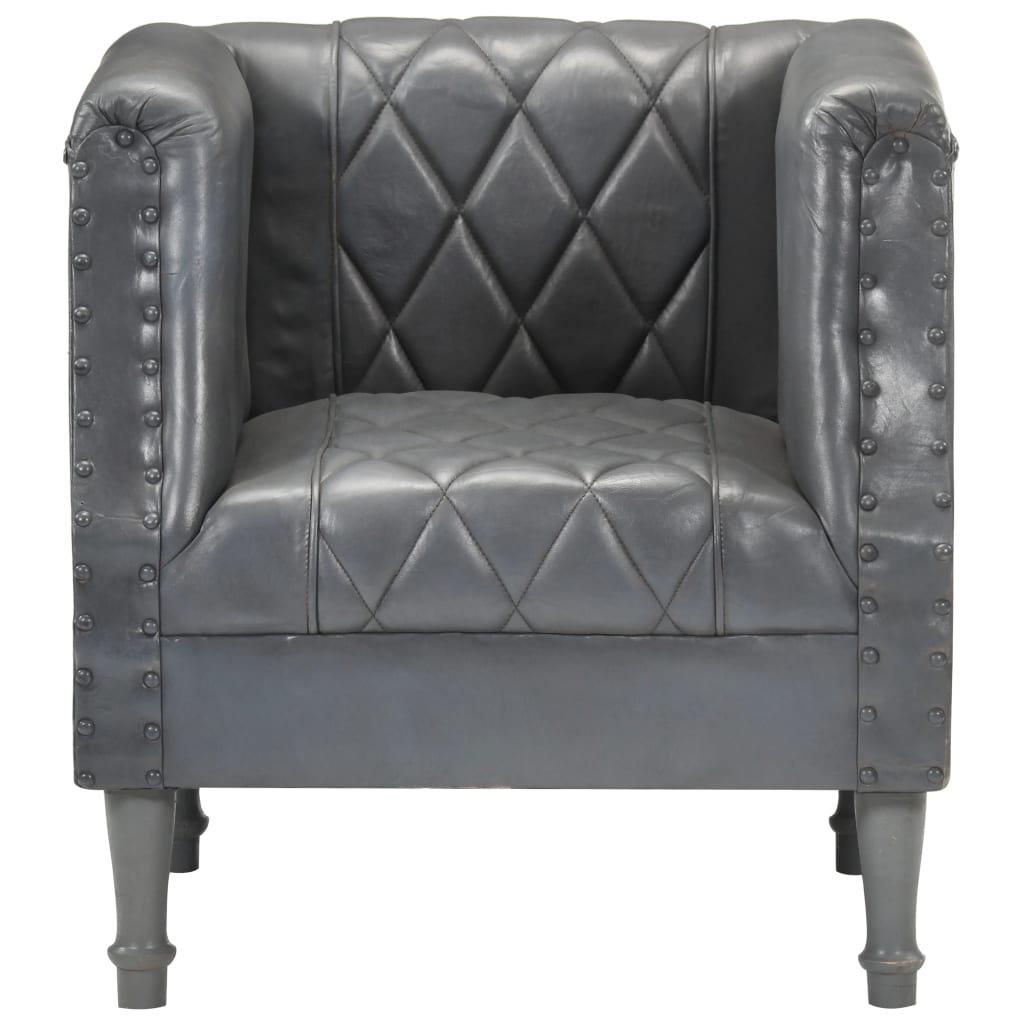 Descriere Fotoliu spătar rotund, gri, piele naturală
