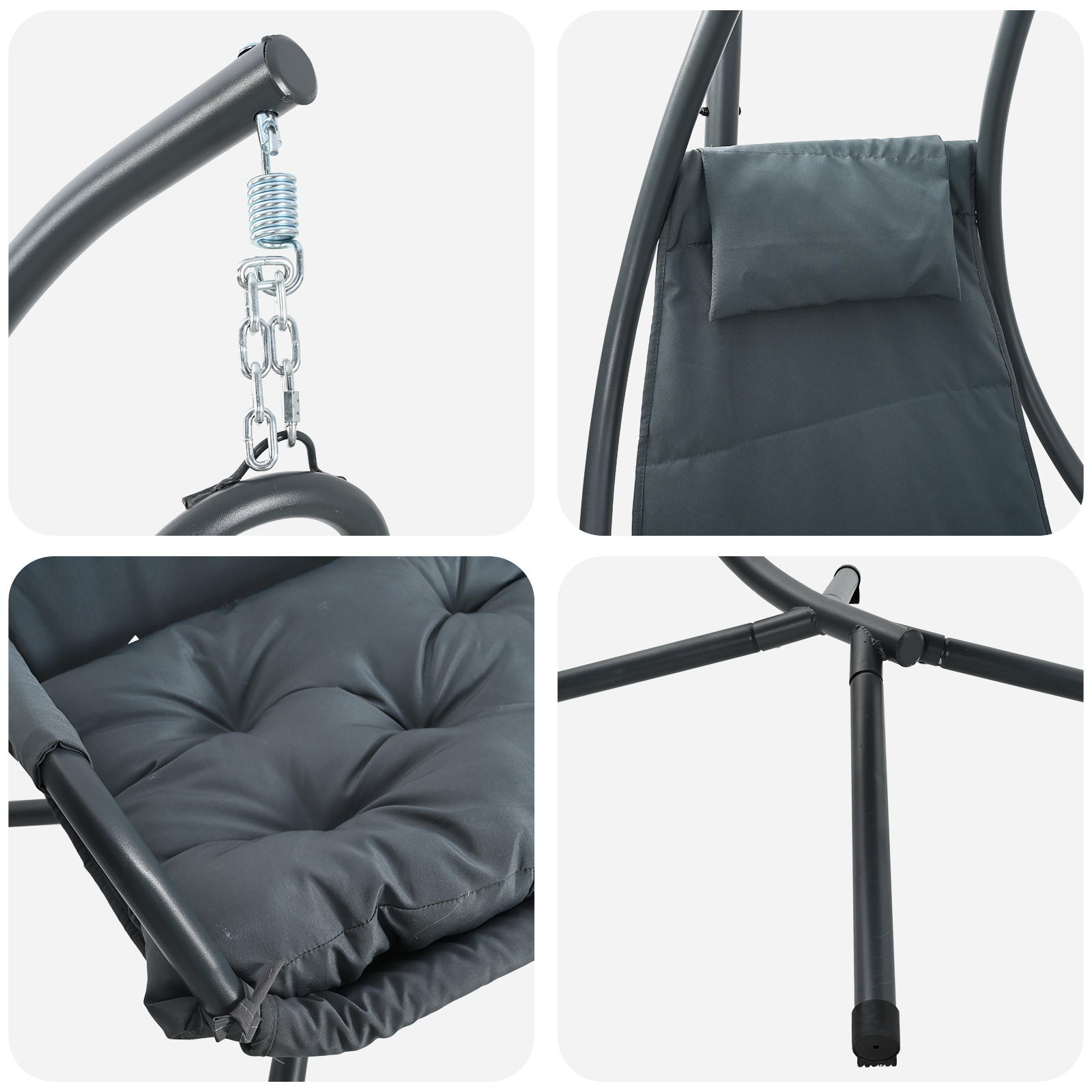 - Construcție Solidă: Făcut din metal tare și țesătură moale, fotoliul ăsta suspendat oferă suport solid, menținând în același timp un șezut confortabil. E un must-have pentru relaxare în aer liber.
