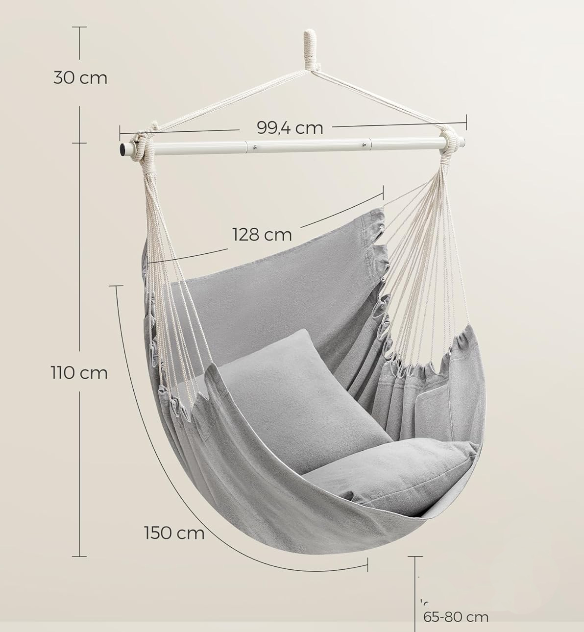Fotoliu suspendat tip hamac SONGMICS cu 2 perne, gri, 150x128 cm