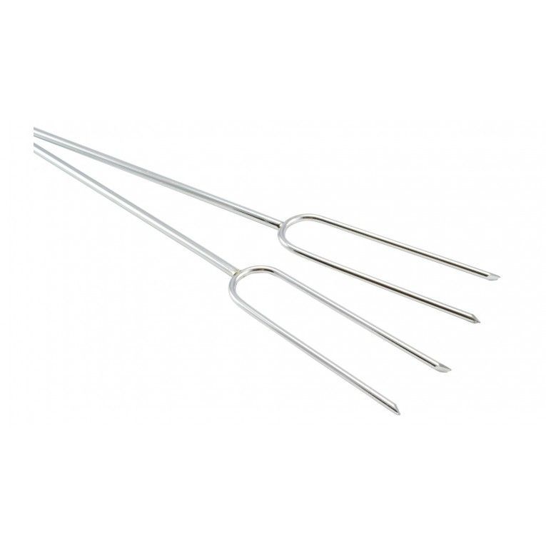 Utilizare: Înfige alimentul în furcă, ține frigăruia de mâner și rotește ușor deasupra jarului până se rumenește uniform. După folosire, spală partea metalică și usucă bine.