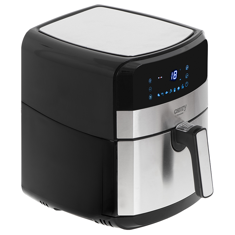 Friteuza cu aer cald de 5 L Camry CR 6311 este un dispozitiv multifunctional, al carui interval de temperatura este de la 80 la 200 de grade Celsius si, in plus, va permite sa reglati timpul de prajire pana la 60 de minute. Tehnologia de convectie folosita pentru a crea acest echipament il face un cuptor de dimensiuni mici, fara grasimi. La prajit se foloseste aer cald, ceea ce elimina necesitatea folosirii grasimii pentru prepararea mancarurilor.