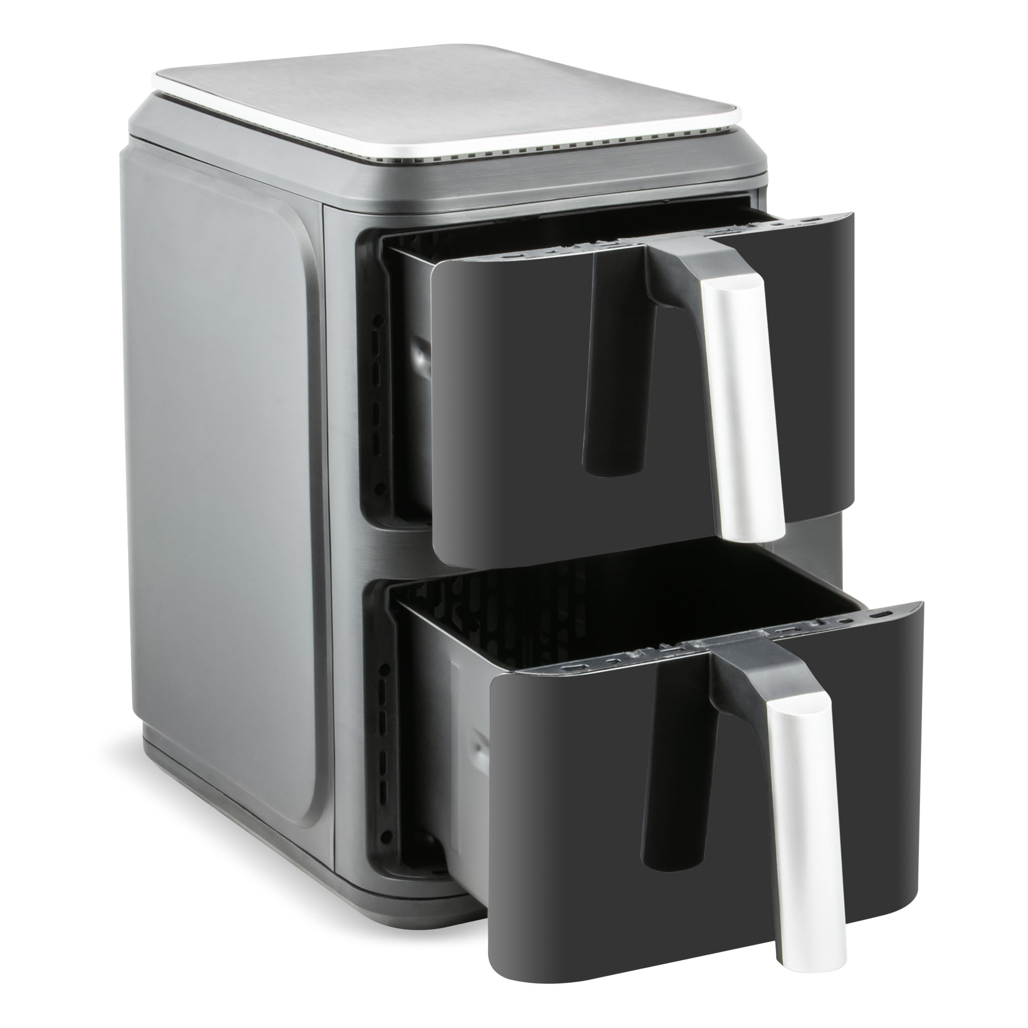 Descriere Friteuza dubla aer cald 2 cosuri