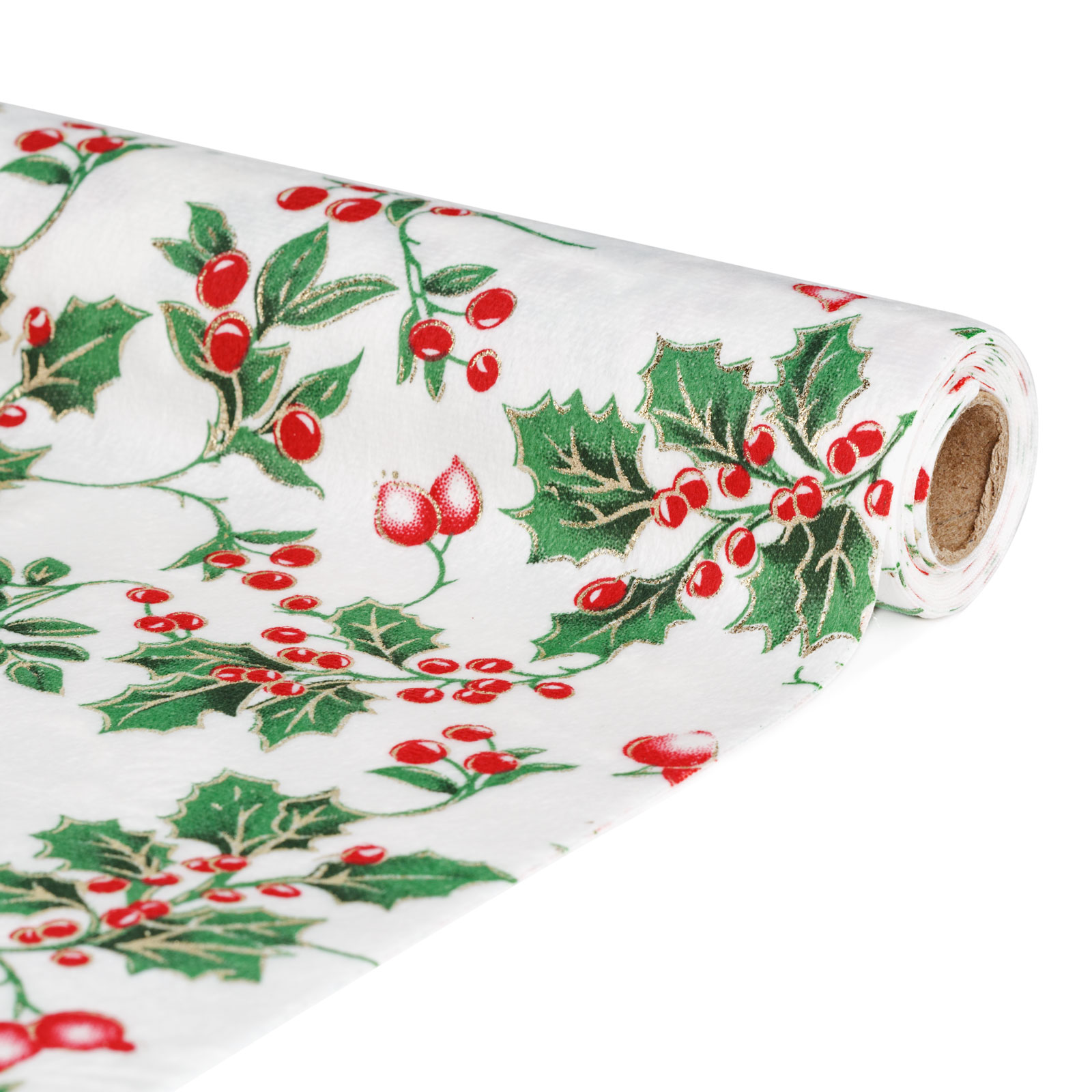 Adaugă eleganță și farmec festiv mesei tale cu acest frunner decorativ alb, împodobit cu detalii fine de bobițe roșii. Cu o lungime de 180 cm, este ideal pentru mesele mari din sufragerie, comode sau măsuțe de cafea, completând perfect decorul de iarnă.