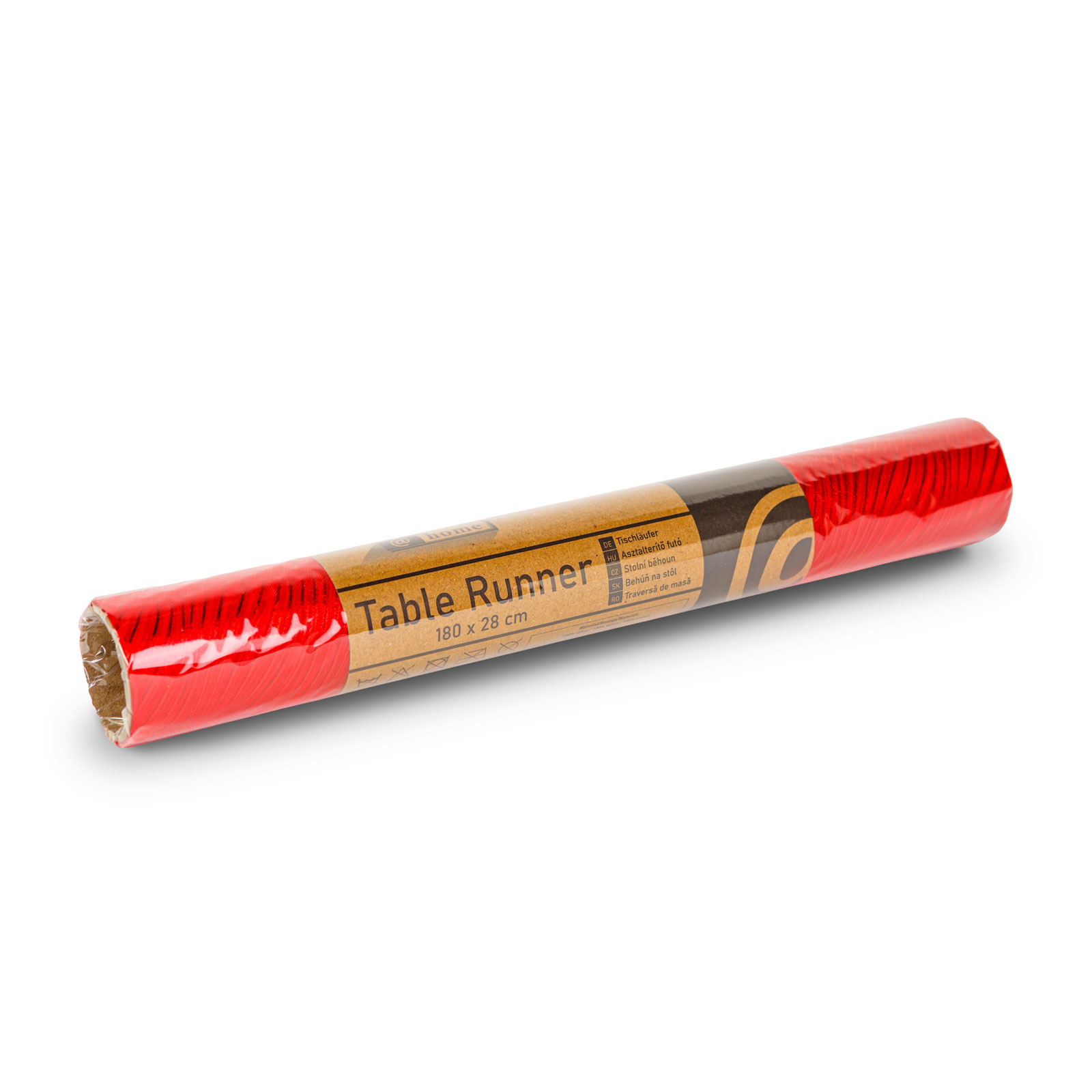Frunner decorativ de masă – 180 x 28 cm – organza – 100% nailon – roșu, model dungat Best CarHome