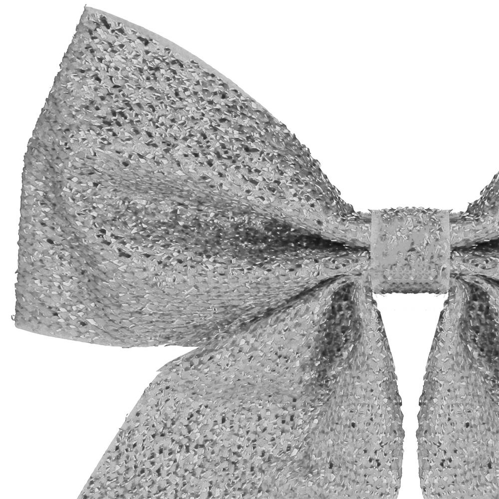 Adauga un plus de eleganta decorului festiv cu aceasta funda decorativa pentru bradul de Craciun, in nuanta argintie, cu finisaj lucios si aspect rafinat. Este alegerea ideala pentru impodobirea pomului, dar si pentru decorarea cadourilor, usilor sau a aranjamentelor de sezon. Datorita sarmei atasate, funda se fixeaza usor si isi pastreaza forma frumoasa.