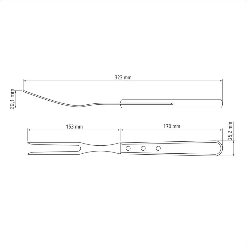 Furca gratar gama POLYWOOD, fabricata din inox de foarte buna calitate, isi mentine stralucirea dupa o utilizare indelungata, maner lung, fabricat din lemn tratat, textura fina, nuanta lemn nuc, rezistent la temperaturi inalte si impact, se poate curata in masina de spalat vase, lungime totala 323mm, ambalata in blister