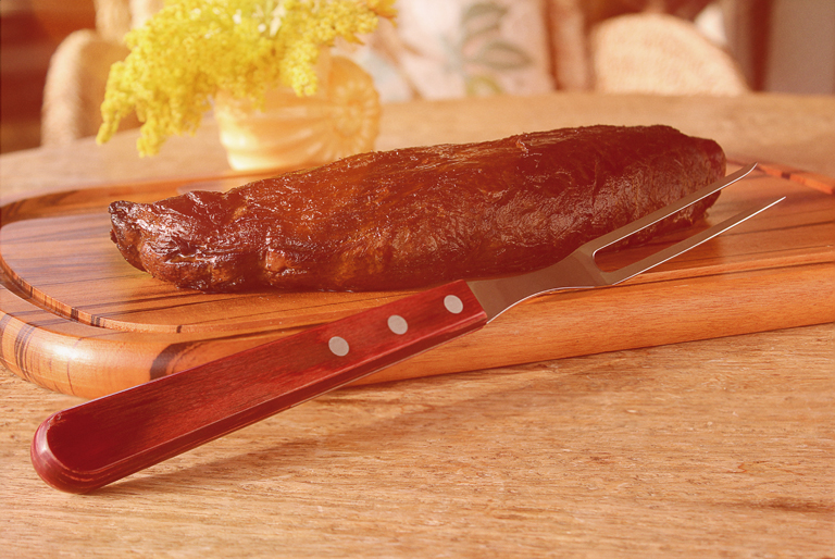 Furca gratar gama POLYWOOD, fabricata din inox de foarte buna calitate, isi mentine stralucirea dupa o utilizare indelungata, maner lung, fabricat din lemn tratat, textura fina, nuanta rosiatica, rezistent la temperaturi inalte si impact, se poate curata in masina de spalat vase, lungime totala 323mm