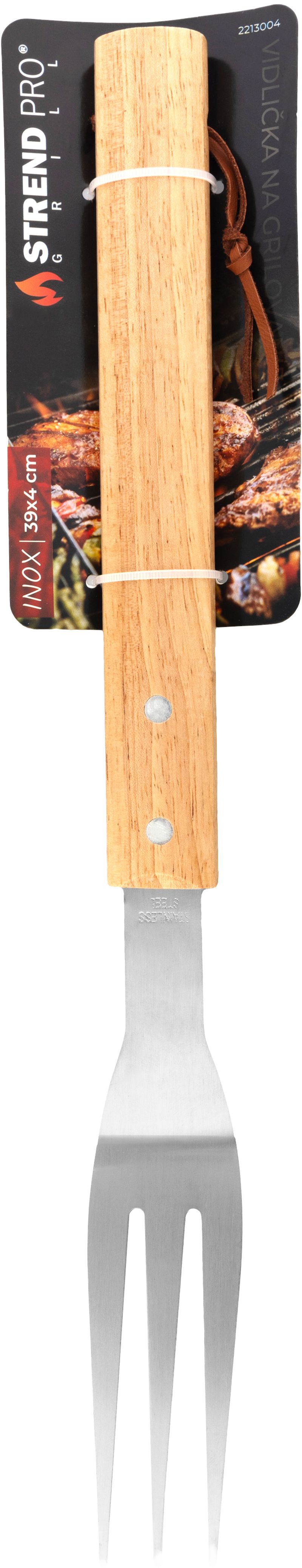 Furculiță pentru grill din inox cu mâner din lemn, 38,5 cm
