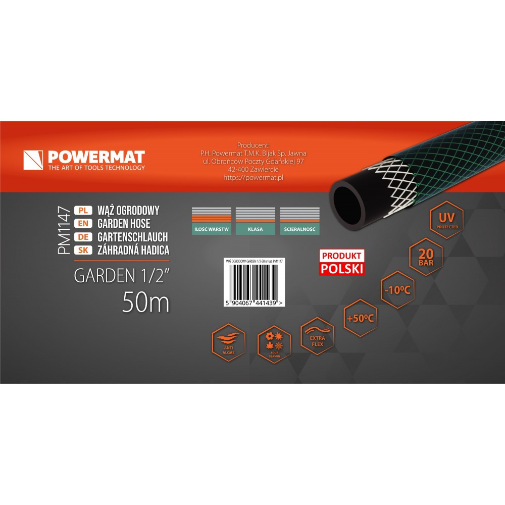 Furtun de grădină Powermat Garden 1/2” 50 m, PVC 3 straturi, rezistent UV