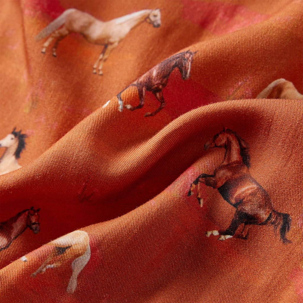 Această rochie pentru copii are mâneci lungi, guler bandă și se închide cu nasturi în față. Rochia pentru fete este imprimată cu cai minunați, elastică la manșete și cusături strânse în talie și genunchi. Confecționată din lyocell, fusta pentru copii este delicată și respirabilă.