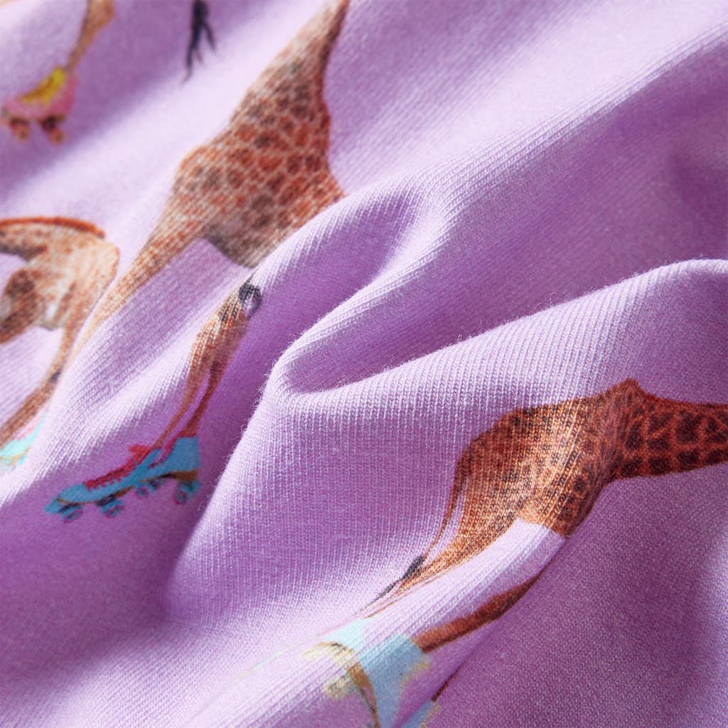 Această fustă pentru copii are un design în formă de A și o bandă elastică în talie. Această fustă pentru copii este imprimată cu girafe pe patine cu rotile peste tot. Fusta scurtă pentru copii este confecționată din material moale, inclusiv 94% bumbac și 6% elastan, pentru confort și respirabilitate.