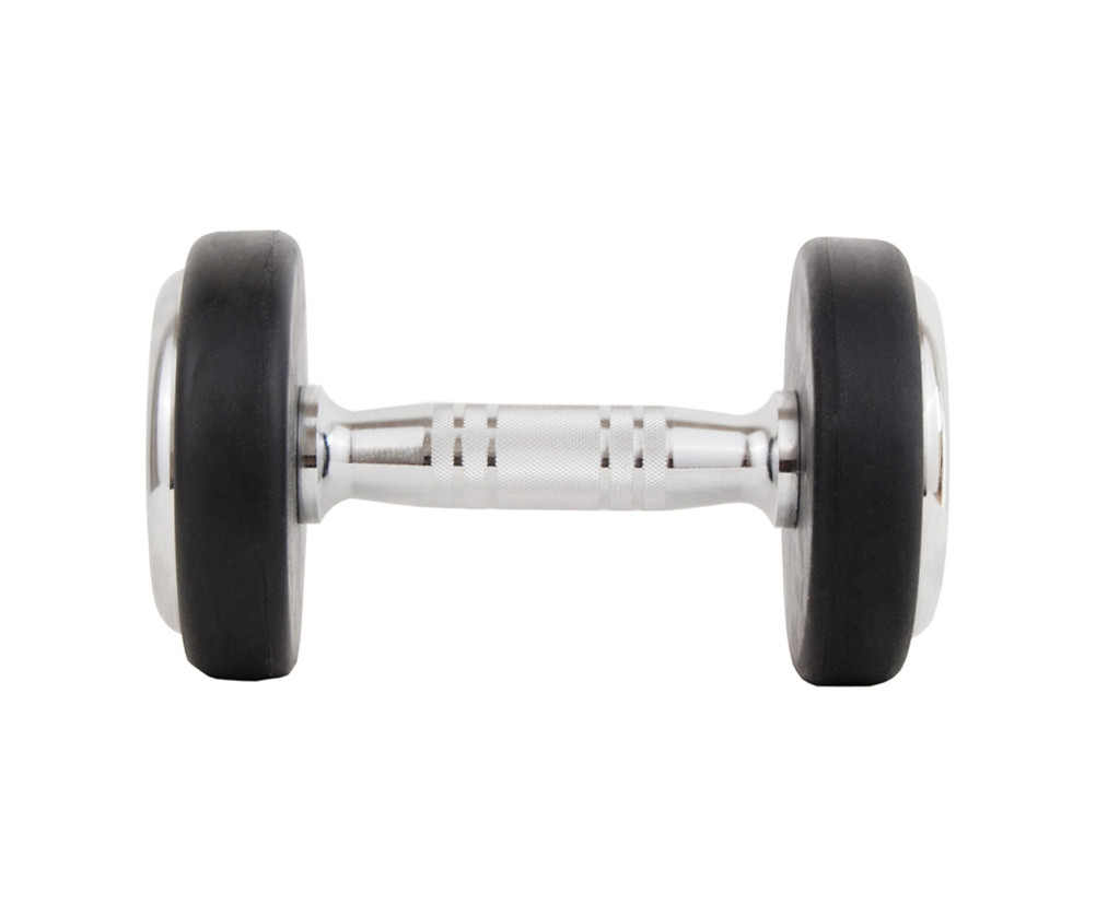 Gantera cauciucata 7.5 kg Deluxe de la Sportmann este ideala pentru exercitii ale musculaturii spatelui, pieptului si a bratelor, acasa sau la sala. Gantera este realizata din fier, cu suprafata cauciucata rezistenta la umezeala si uzura. Manerul cu finisaj cromat are forma ergonomica si este prevazut cu striatii pentru o prindere sigura a ganterei. Greutatile sunt cauciucate, material care protejeaza impotriva deteriorarii si amelioreaza impactul in momentul ciocnirii de un obiect/suprafata. Gantera cauciucata profesionala este destinata antrenamentelor de dezvoltare a muschilor biceps, triceps si poate fi folosita atat pentru uz casnic, cat si in centrele de fitness datorita rezistentei sale.