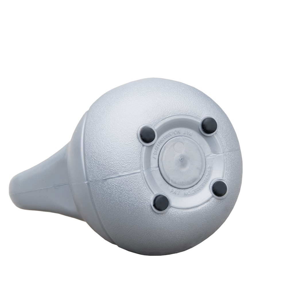 Partea inferioara este usor aplatizata si are 4 picioruse cauciucate pe care se sprijina pentru o stabilitate mai buna atunci cand depozitati gantera.