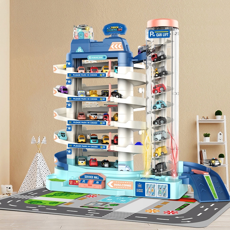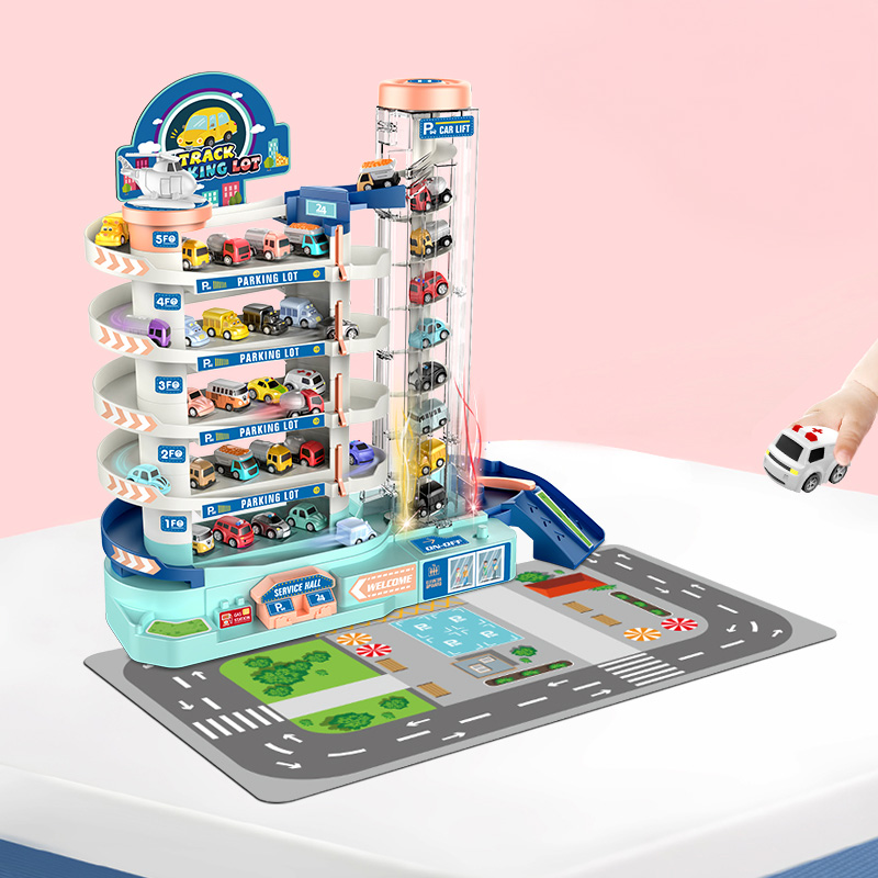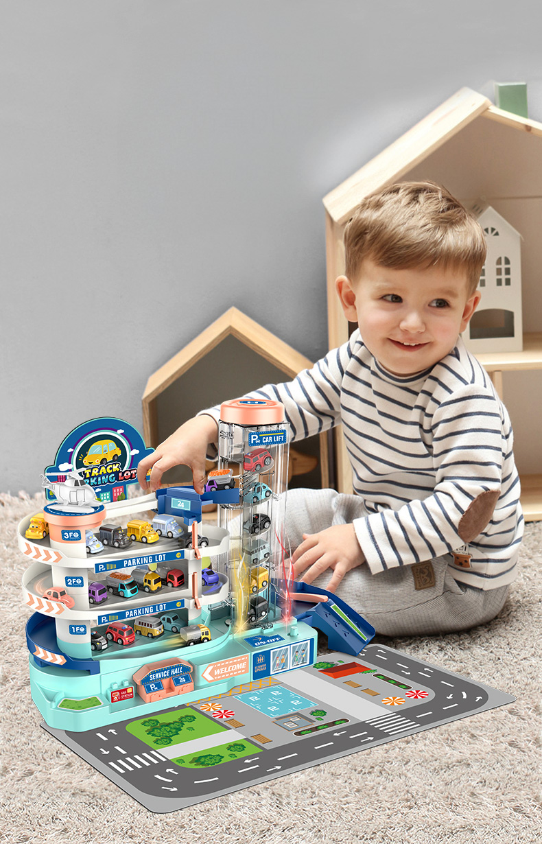 Garaj auto pentru copii cu lift electric, parcare multipla si 8 masini