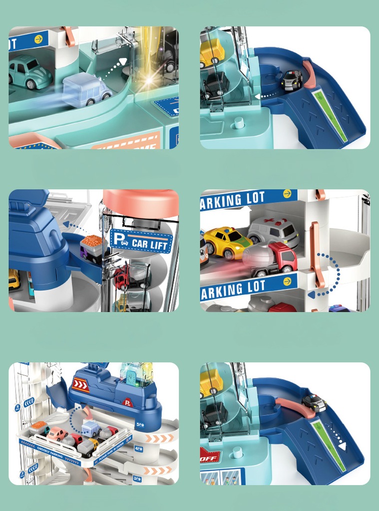 Transforma fiecare zi de joaca intr-o aventura urbana cu acest garaj auto pentru copii, conceput pentru micii pasionati de masini, parcari si curse. Setul include parcare multipla, lift electric pentru vehicule, piste de coborare si 8 masinute gata de actiune. Copiii pot inventa scenarii variate, pot urca masinile intre niveluri si isi pot dezvolta imaginatia, coordonarea si indemanarea prin joaca interactiva.